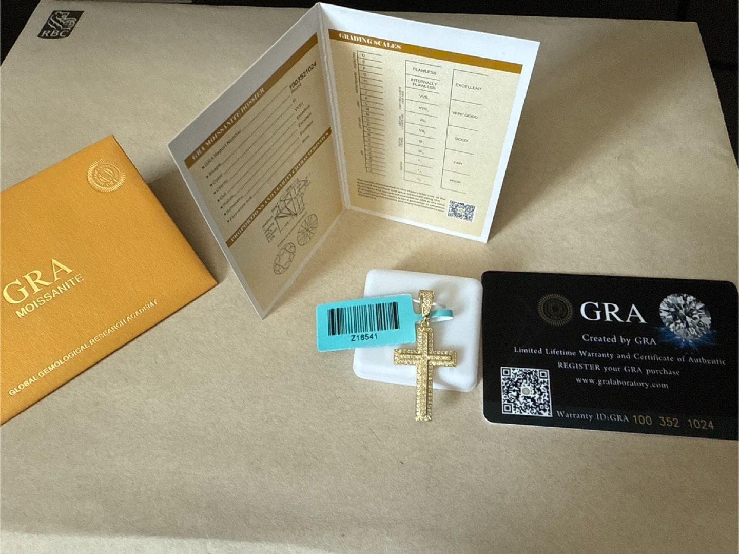 This is a GRA Moissanite cross pendant. It comes with a certificate of authenticity and grading report from the Global Gemological Research Academy. Register your GRA purchase for a limited lifetime warranty.