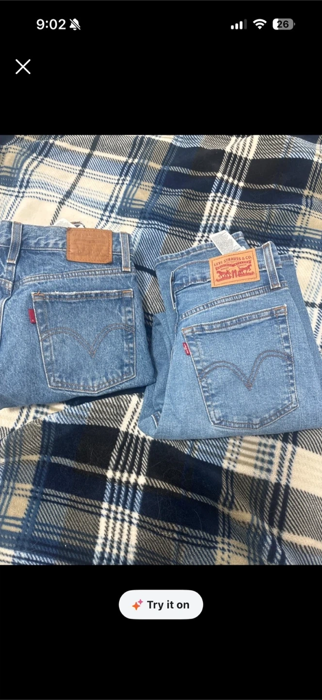 A pair of classic Levi Strauss & Co. blue denim jeans. These are medium wash jeans made from durable denim. They're perfect for everyday wear. Pick up cash only 15 each