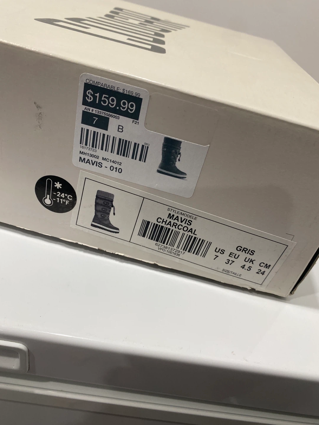 Selling a pair of Cougar winter boots in charcoal grey, size 7. These boots are Brand New and come with the original box. They are rated for temperatures down to -24°C or -11°F. A stylish and warm choice for the Canadian winter!