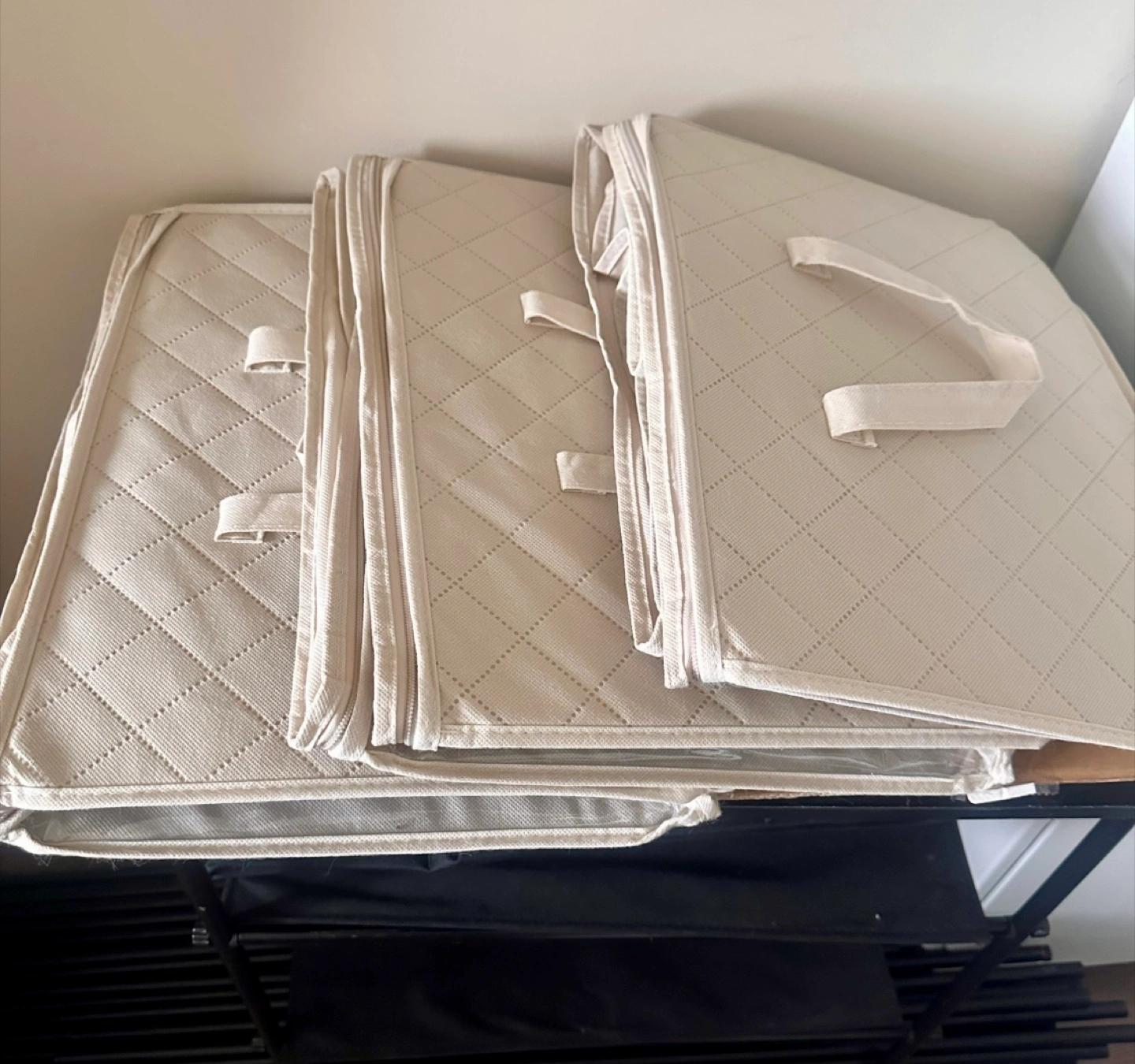 Selling three beige storage bag organizers. They're in great shape and ready to help you declutter! Perfect for storing clothes, linens, or anything else you need to keep organized
