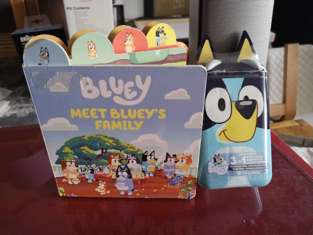 This is a Bluey book and shampoo set, perfect for Bluey fans! The set is in good condition and ready for a new home. I'm pretty sure that if this ad is still up, it's available!