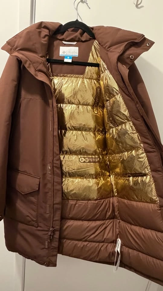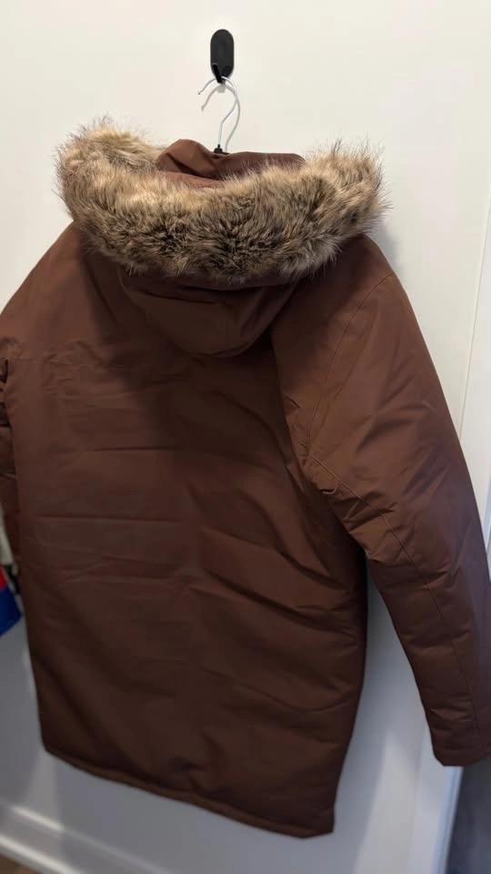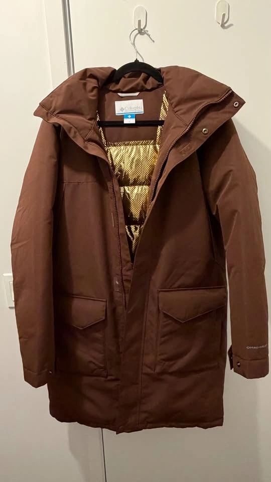 Columbia Men's Cape Ridge Parka in Tobacco color. Features waterproof material, Omni-Heat Infinity for maximum warmth, and a removable faux fur trim. This is a new product, only worn once as it was too warm for my needs. Pickup available in downtown Montreal.