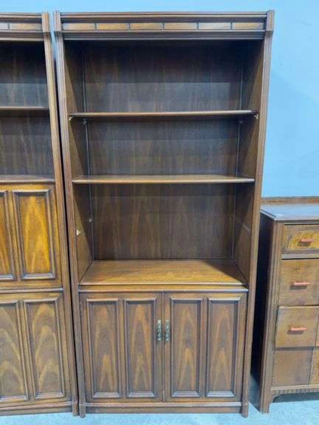 Vintage Wooden Bookshelf with Cabinet Storage