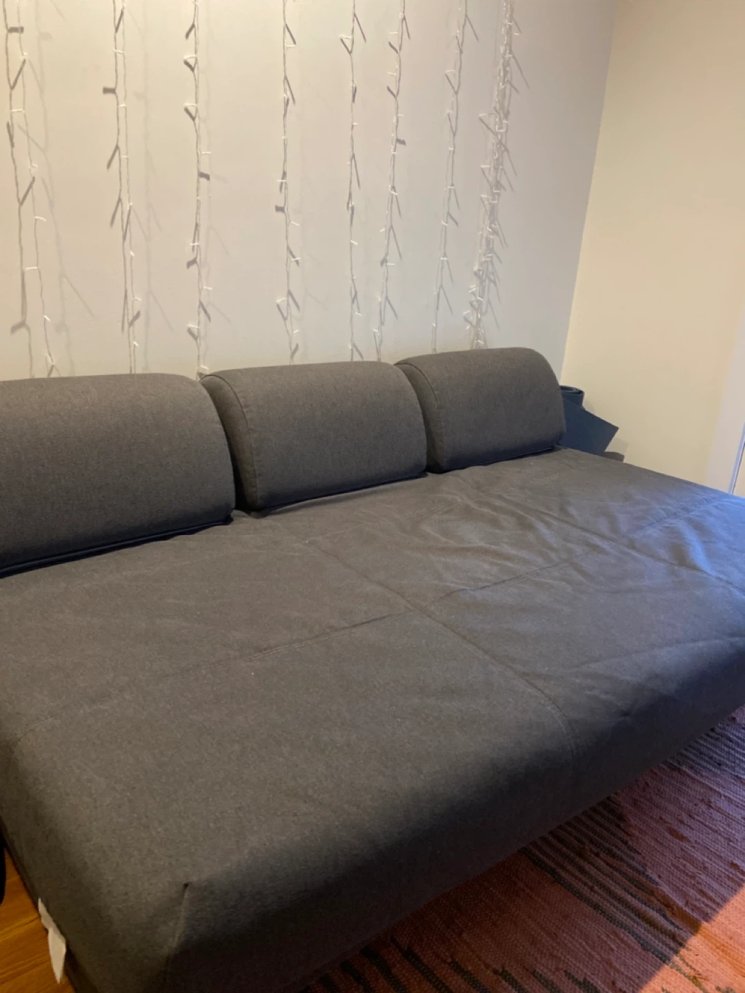 Selling an IKEA Backabro sofa bed in gray. It's in good condition and ready for a new home! It's a comfortable and stylish piece of furniture that's perfect for small spaces.