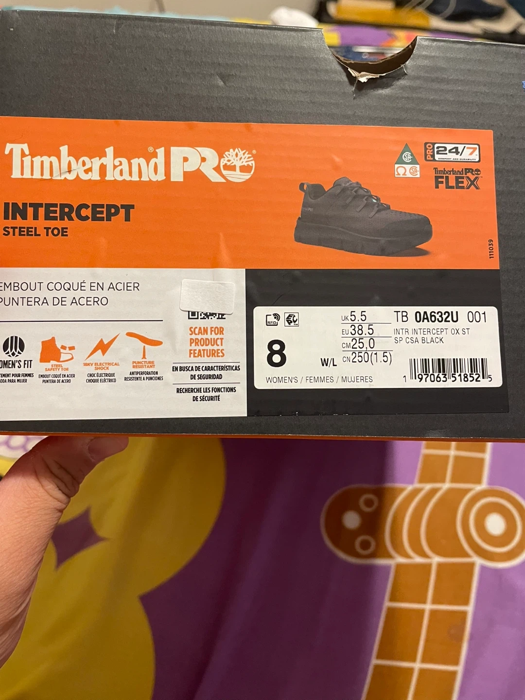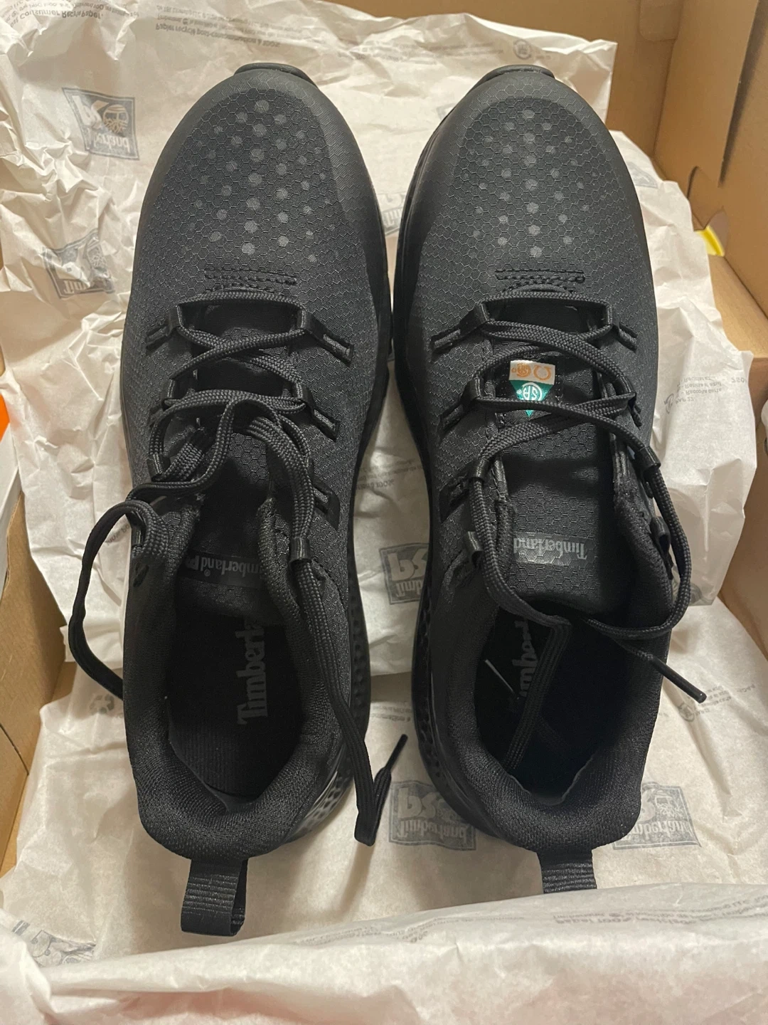 These Timberland PRO Intercept work shoes offer steel toe protection. They are designed for women and come in a size 8W. The style is black and they're built for durability.