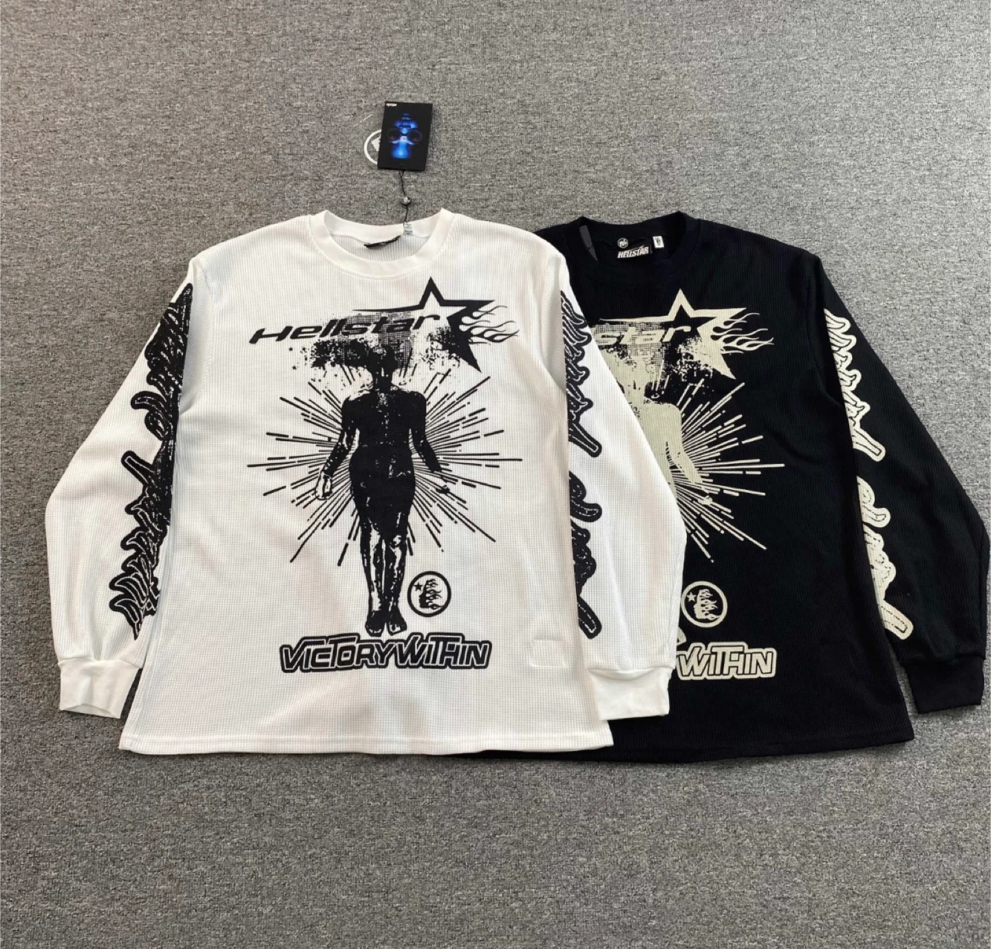 These are Hellstar Hoodies, T-Shirts and Long sleeves shirts for sale. For a T-shirt its $44.99, Long sleeves shirts are $59.99 and Hoodies are $79.99