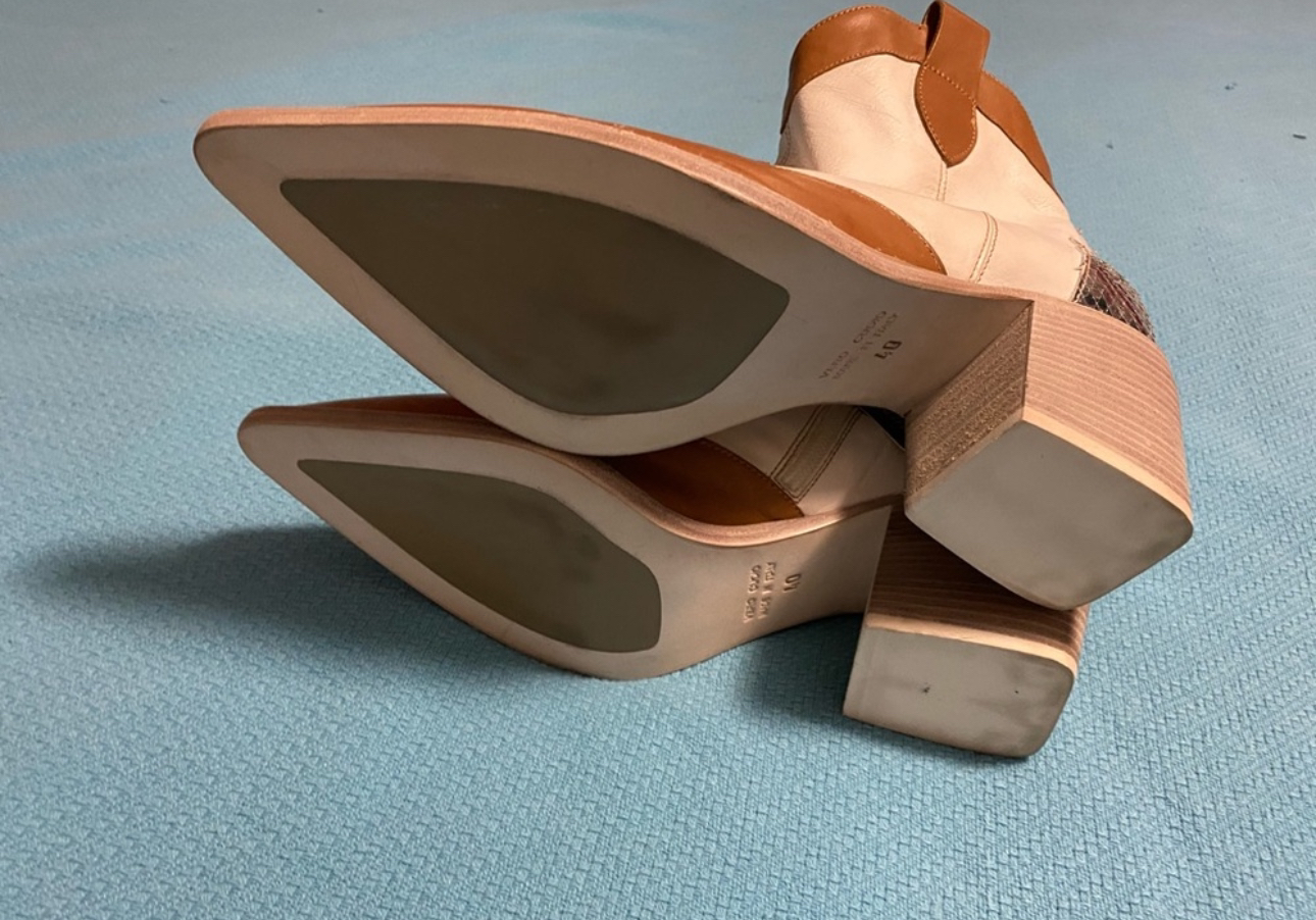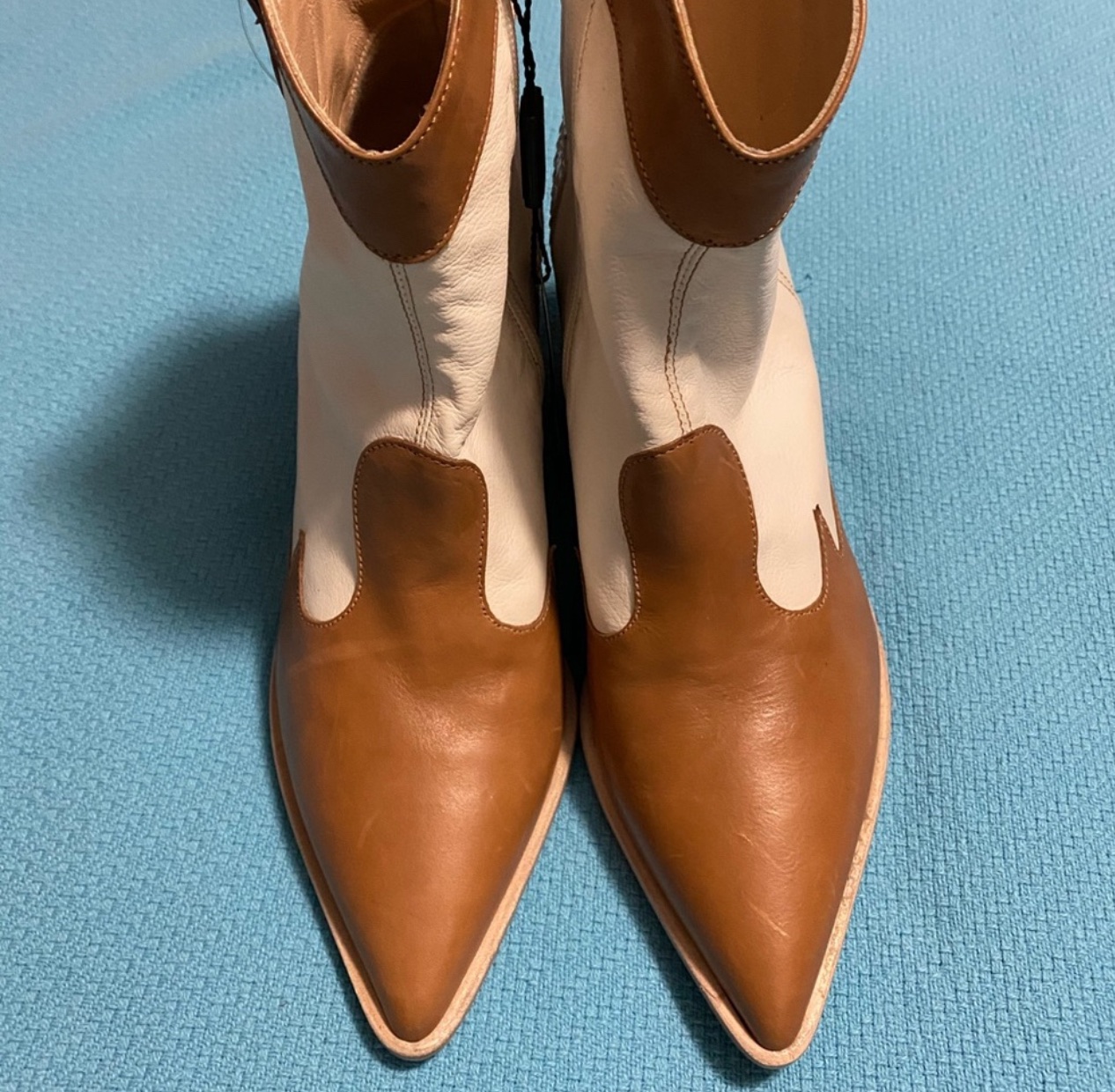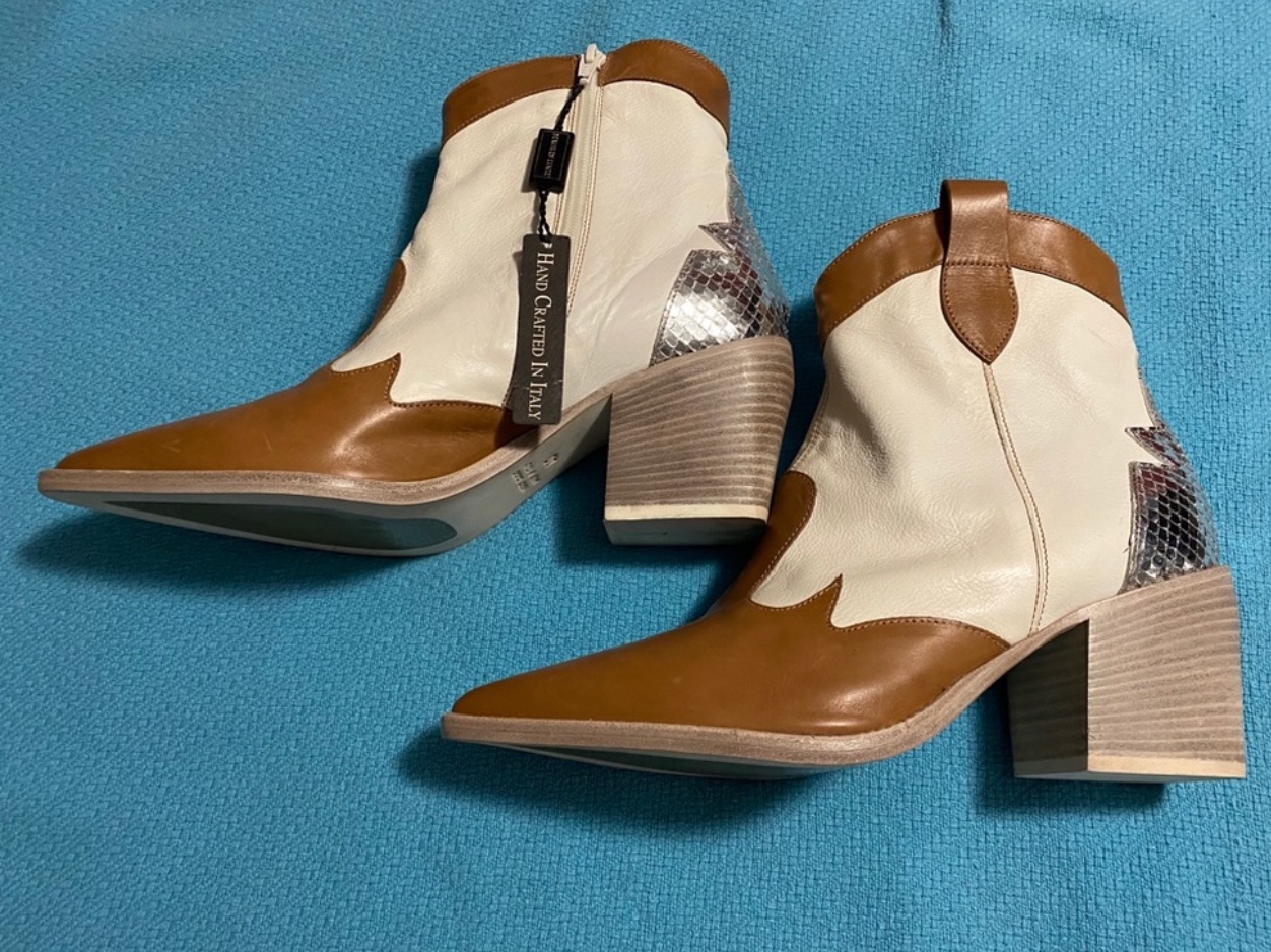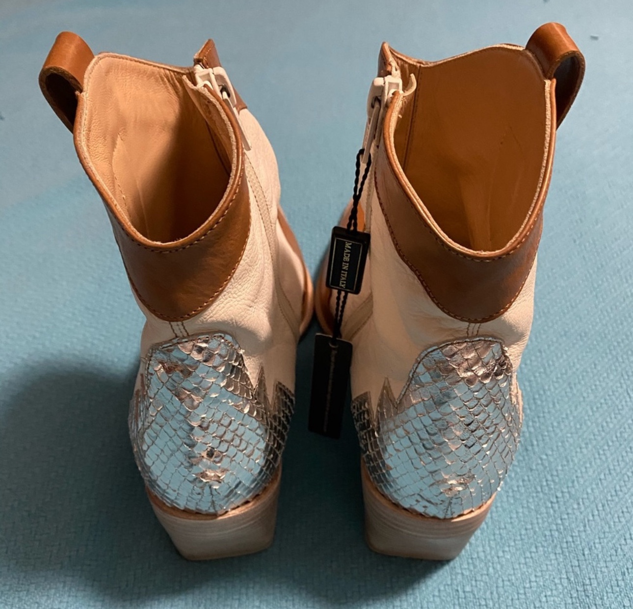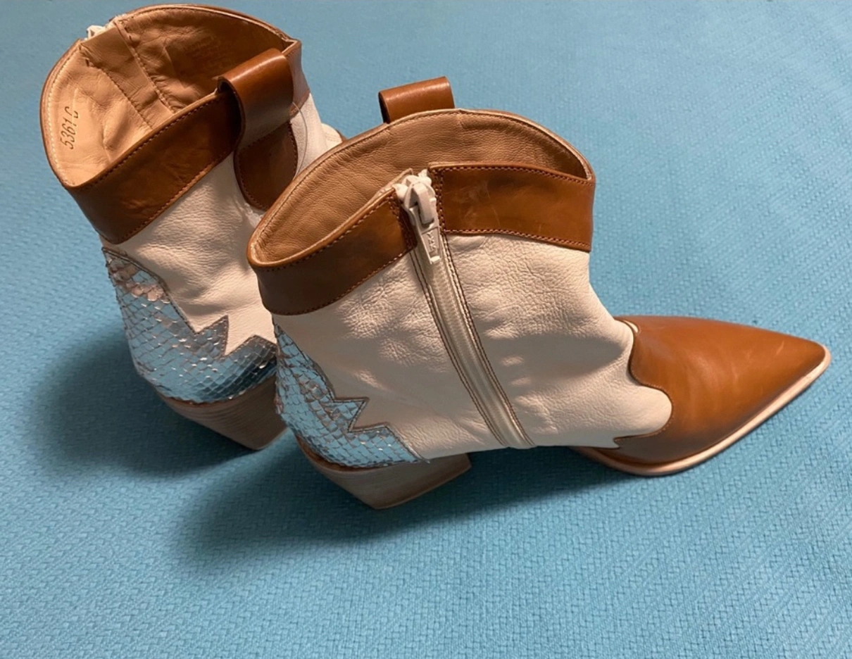 Laura Bellariva Leather Tex Cowboy Ankle Boots Brown & off white soft leather