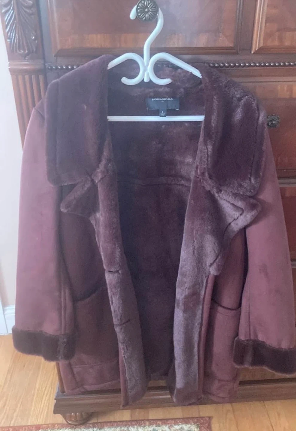 Banana Republic Faux Suede/Fur Lined Jacket - Burgundy - Size L