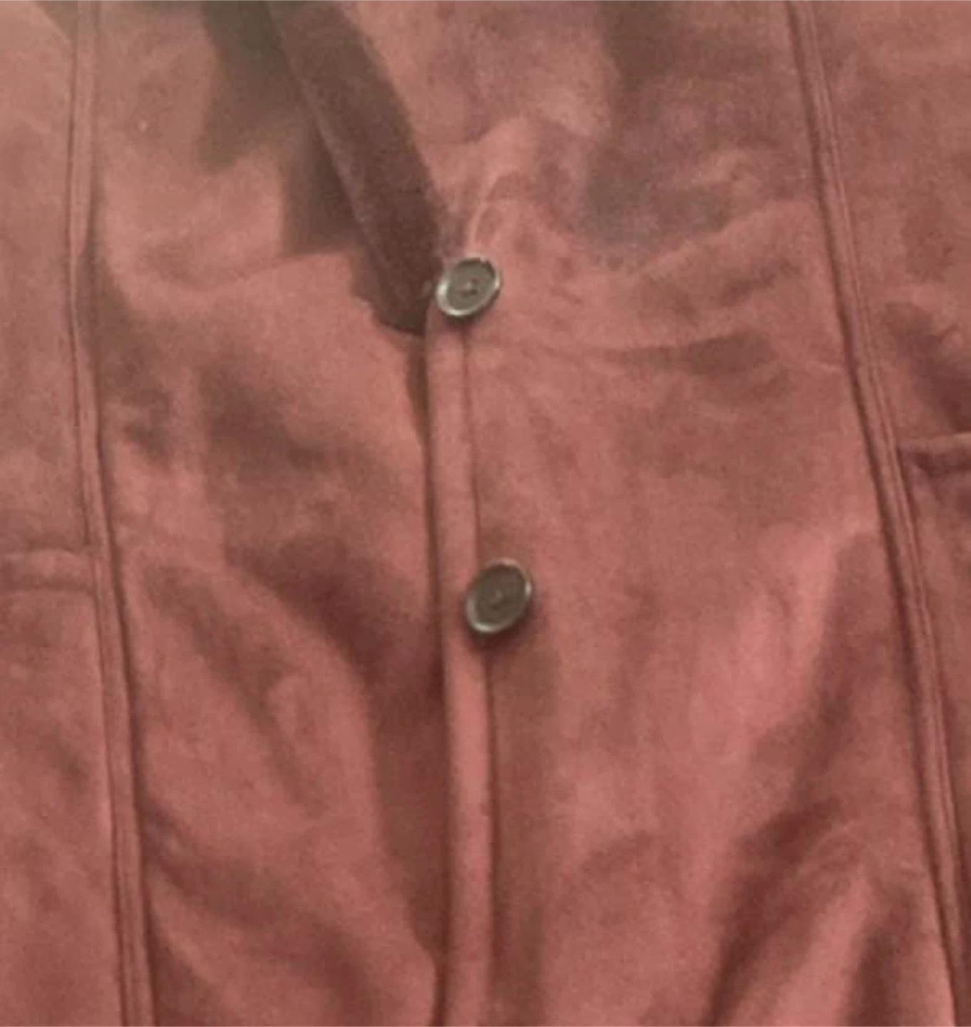 This Banana Republic jacket features a faux suede exterior with a plush faux fur lining and collar. It has a button closure and side pockets. Made in India. Size L.