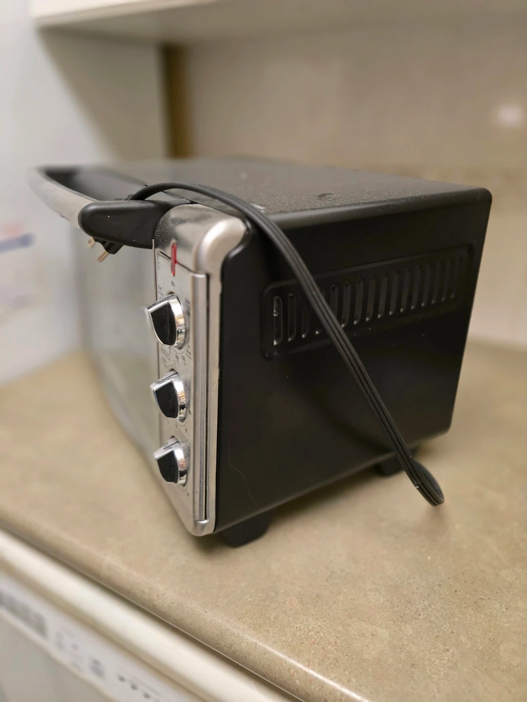 This BLACK+DECKER toaster oven toasts, bakes, and broils. It has a 15-minute timer and temperature control. It's great for quick snacks and meals! Used a few times only. Very clean.