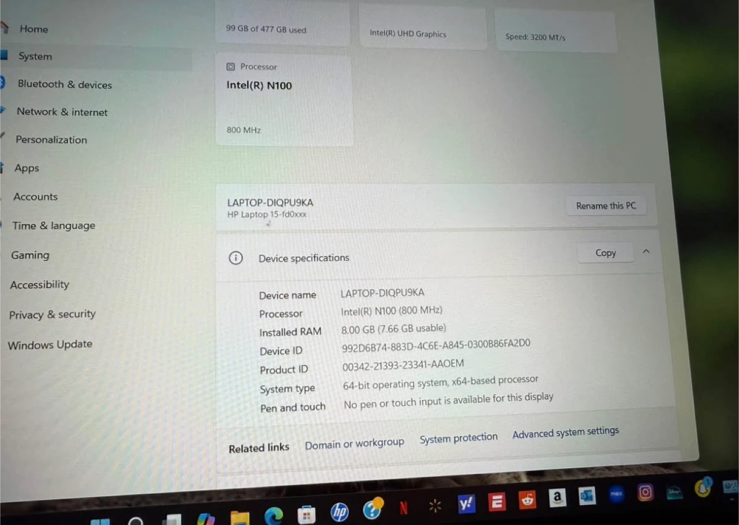 HP Laptop 15-fd0xxx Intel N100 8GB RAM 477GB