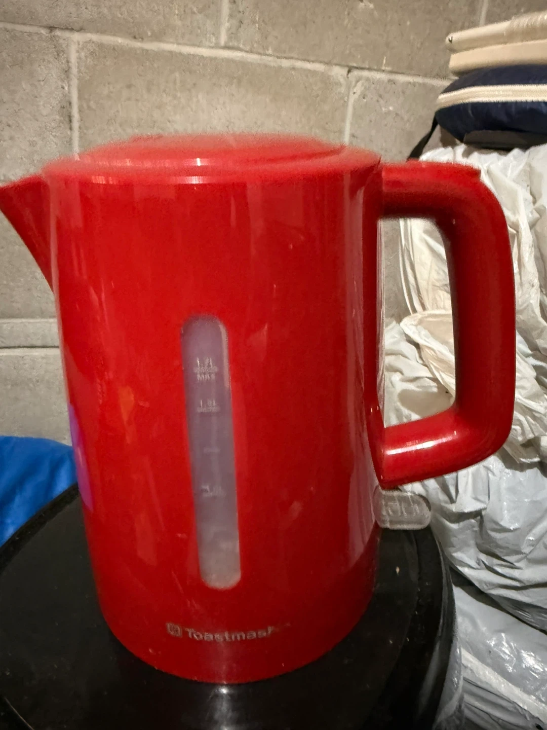 This is a red electric kettle from Toastmaster. It has a water level indicator. Maximum capacity is 1.7L.