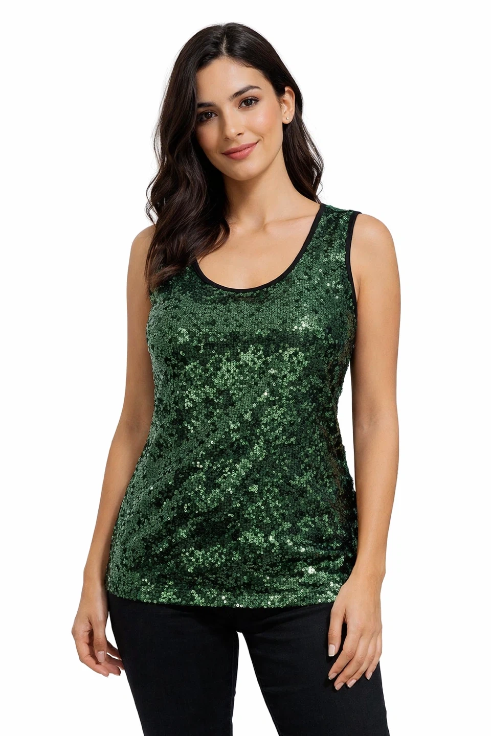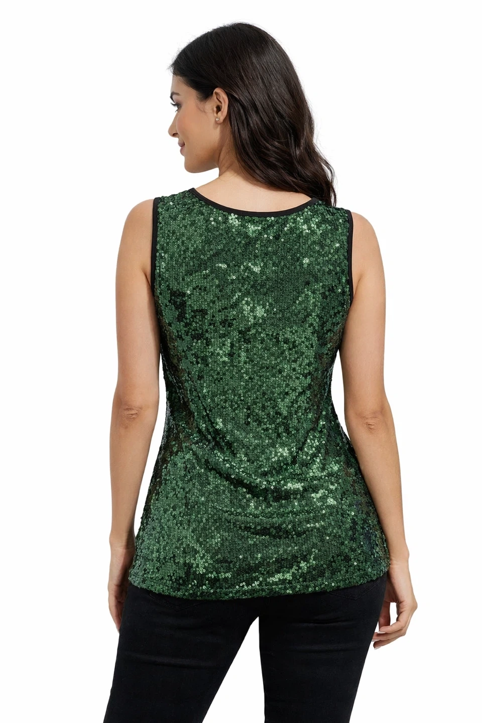 Women’s sleeveless sequin top by DS Lab in a beautiful green color.