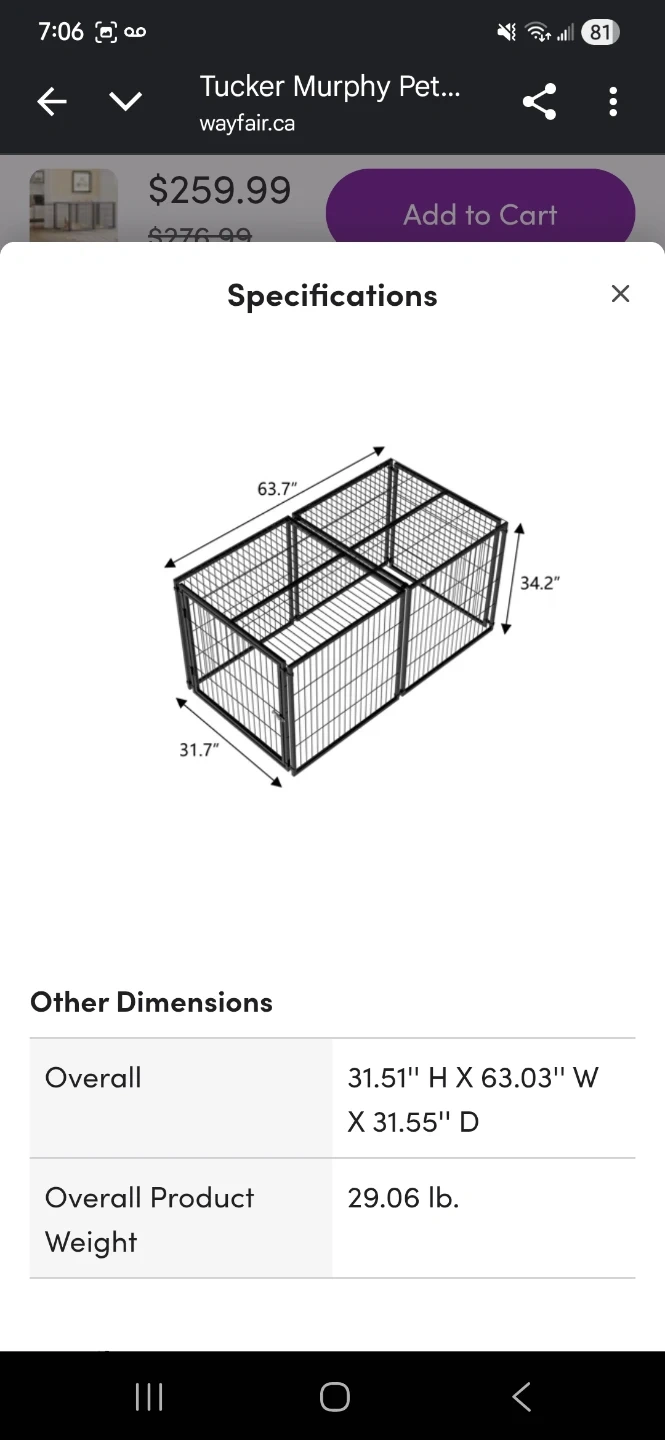 Large dog cage playpen for medium dogs. Black, wire construction.