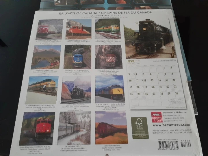This calendar features railways of Canada from 2011. It includes images of locomotives and rail cars. Great for railway enthusiasts!