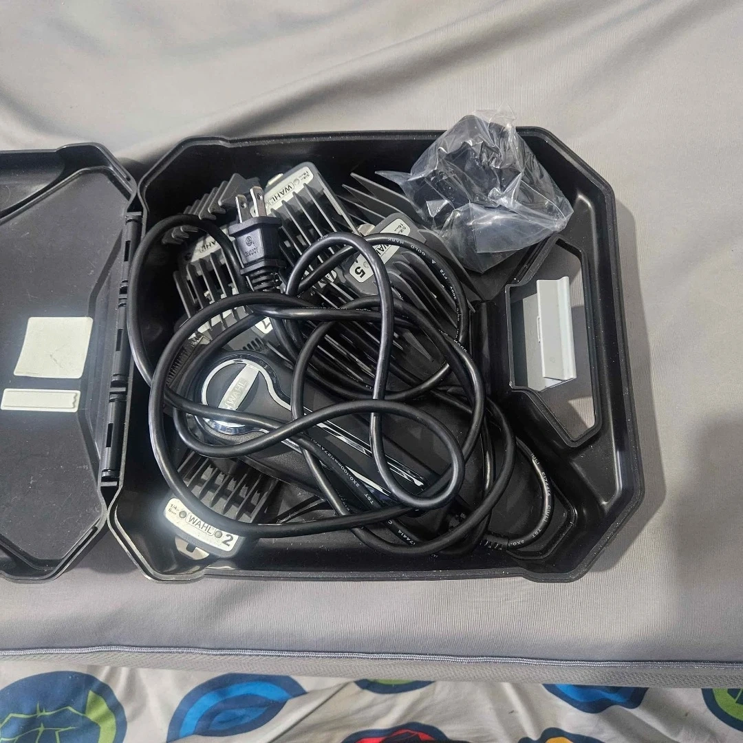 Selling a Wahl hair clipper set! It comes with various attachment combs and accessories, all neatly stored in a case.