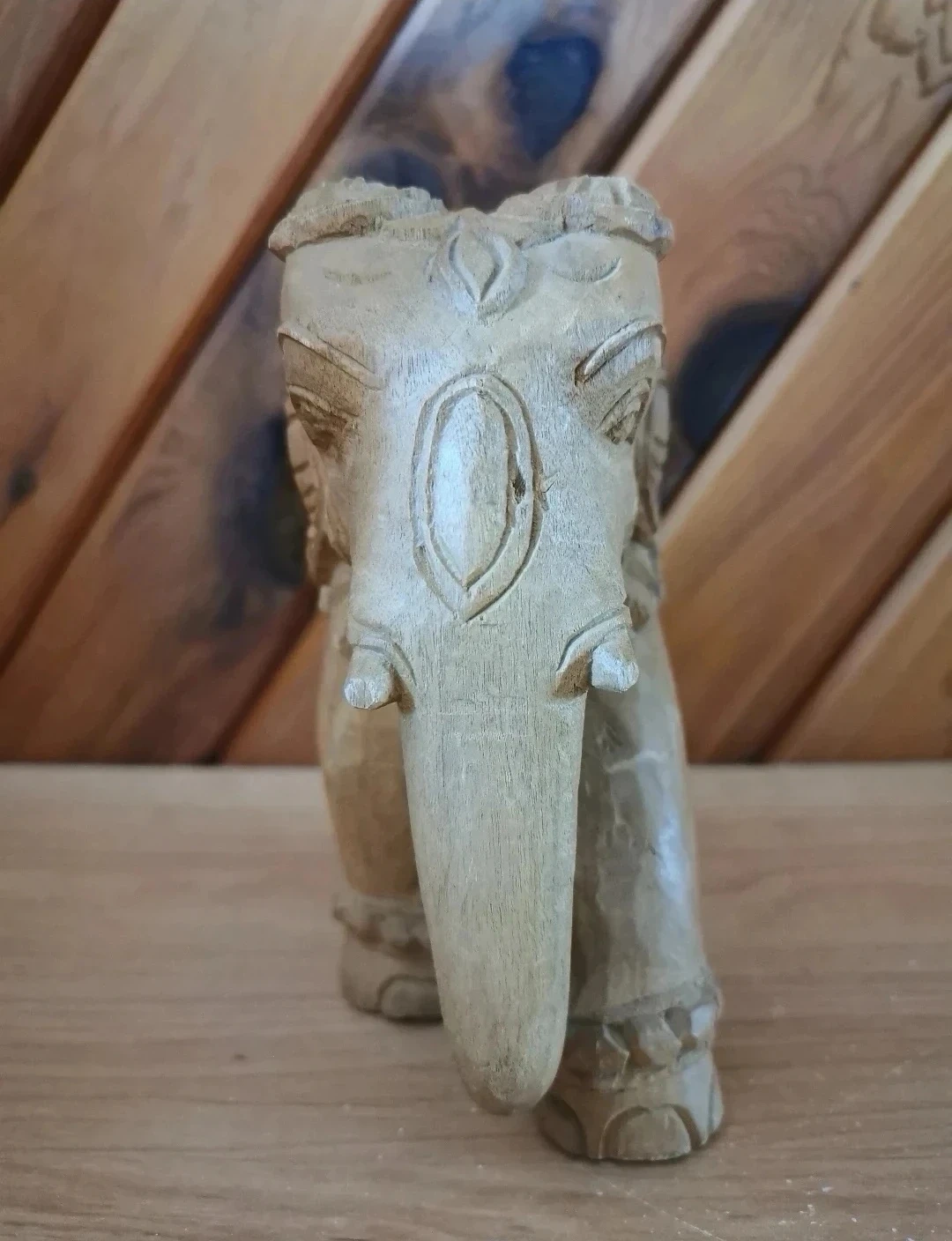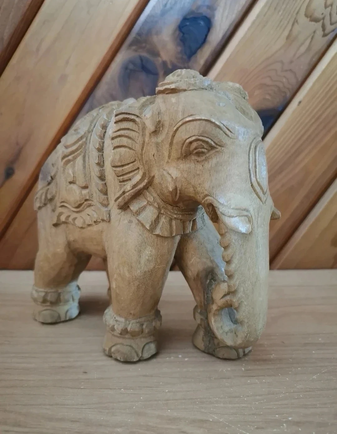 Unique Vintage Wooden Hand Carved Elephant with Beautiful Design and Intricate Details