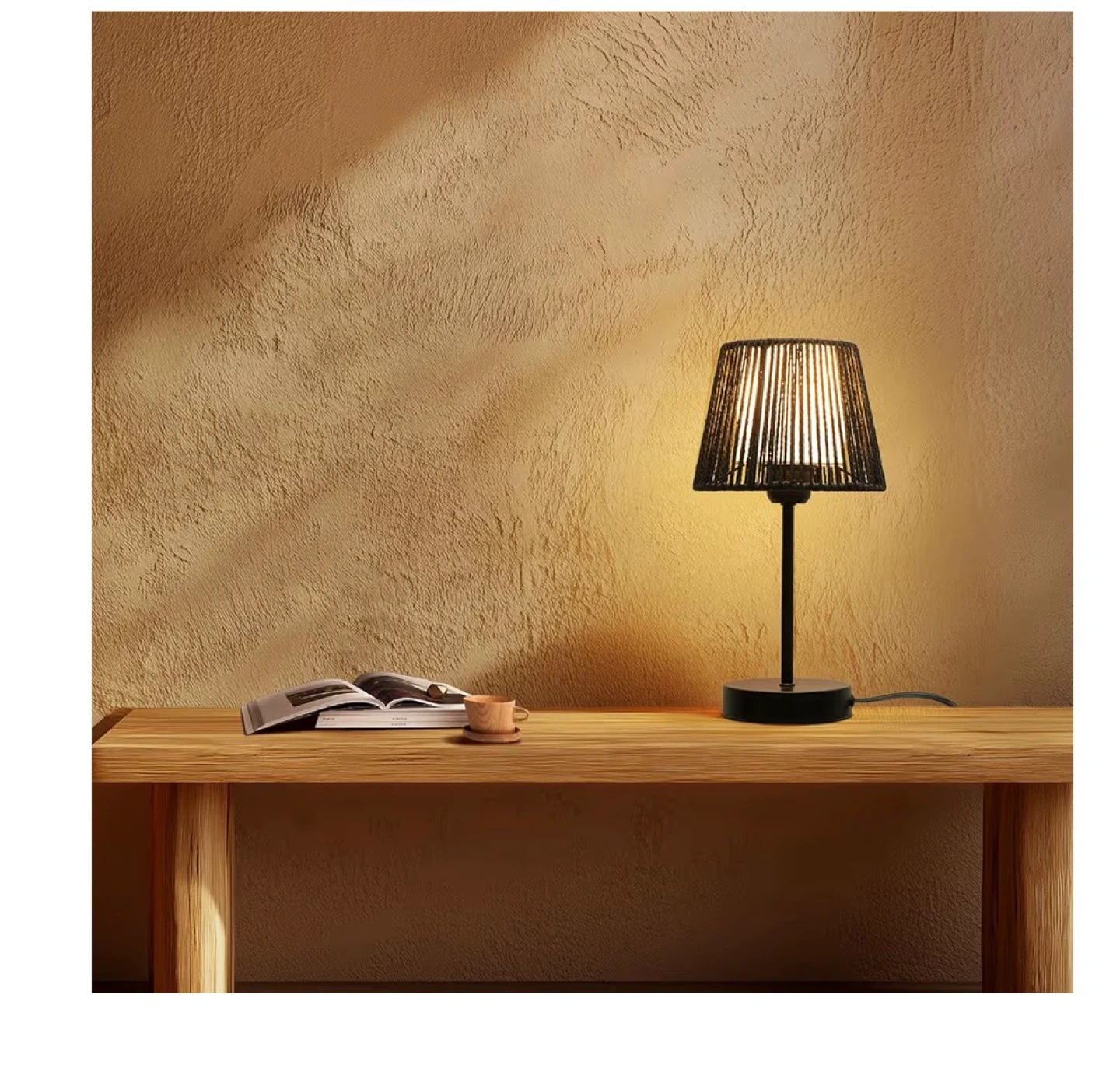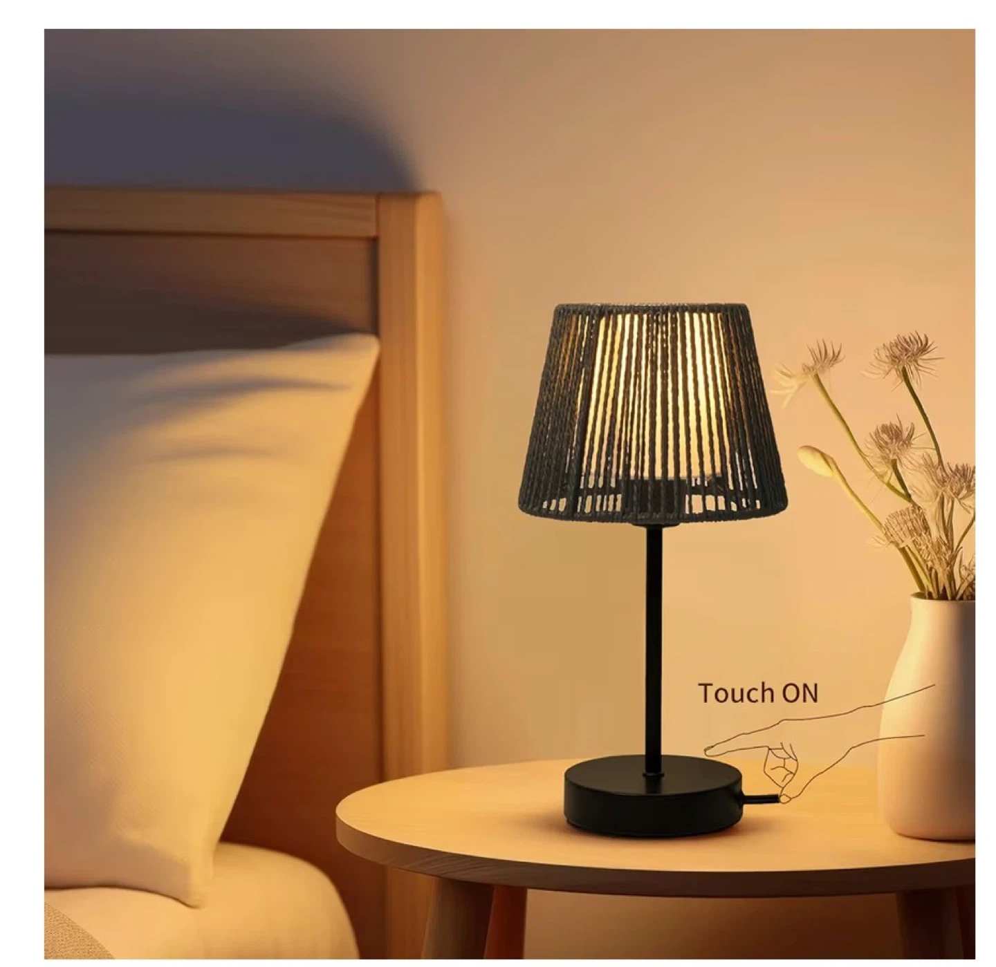2 Touch Control Boho Rope Table Lamp - 14.2" - Black