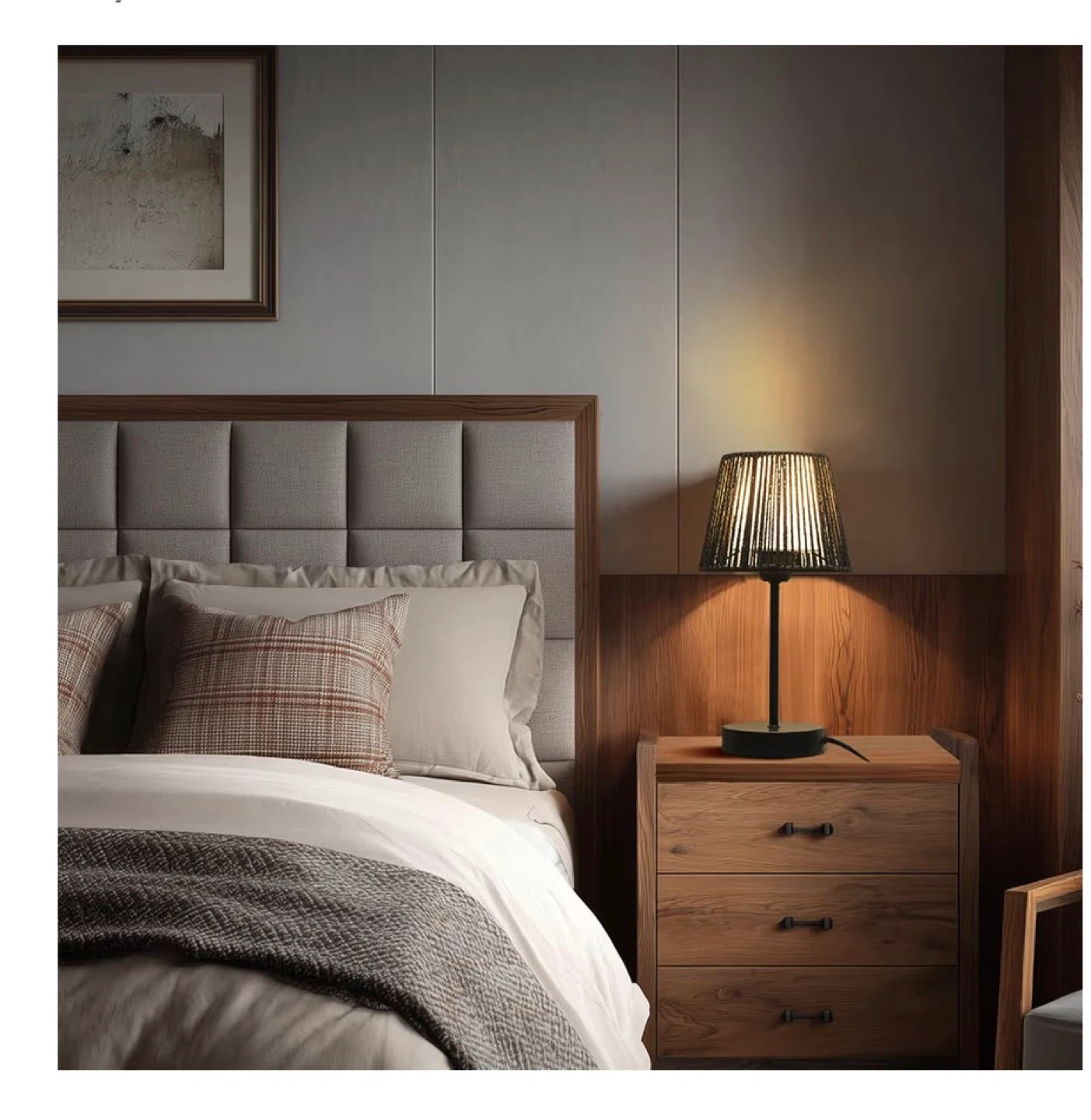 This touch-controlled bedside lamp offers 3-way dimming. It features a rattan lampshade in a bohemian style. Bulb is included! Set of 2