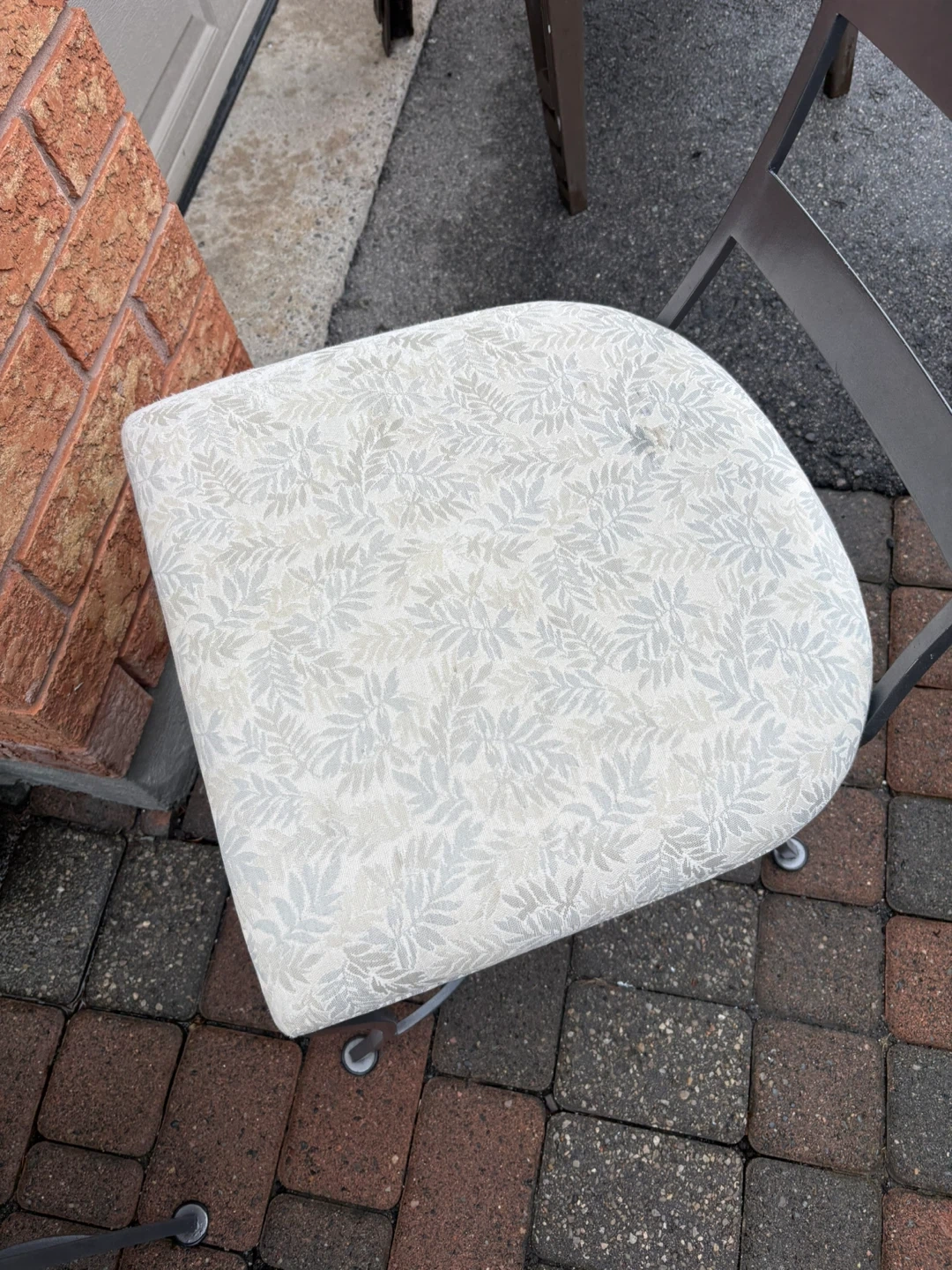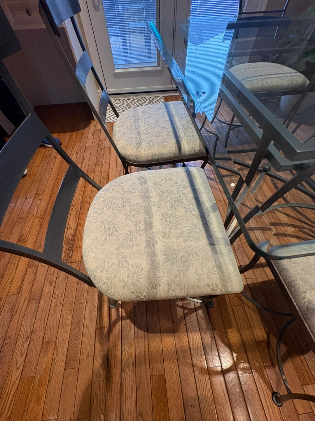 Wrought Iron custom Glass Top Dining Table with 6 Fabric Chairs