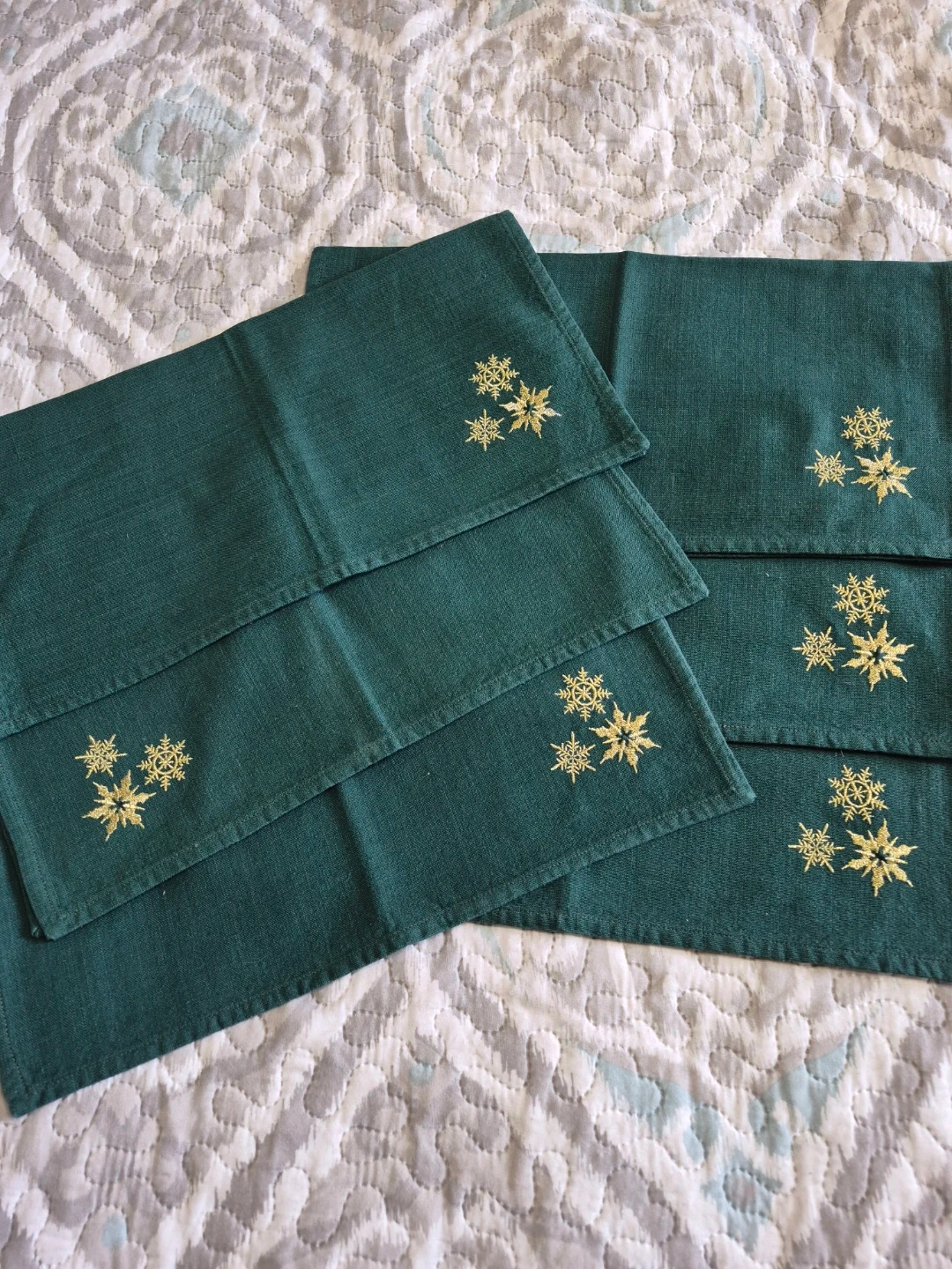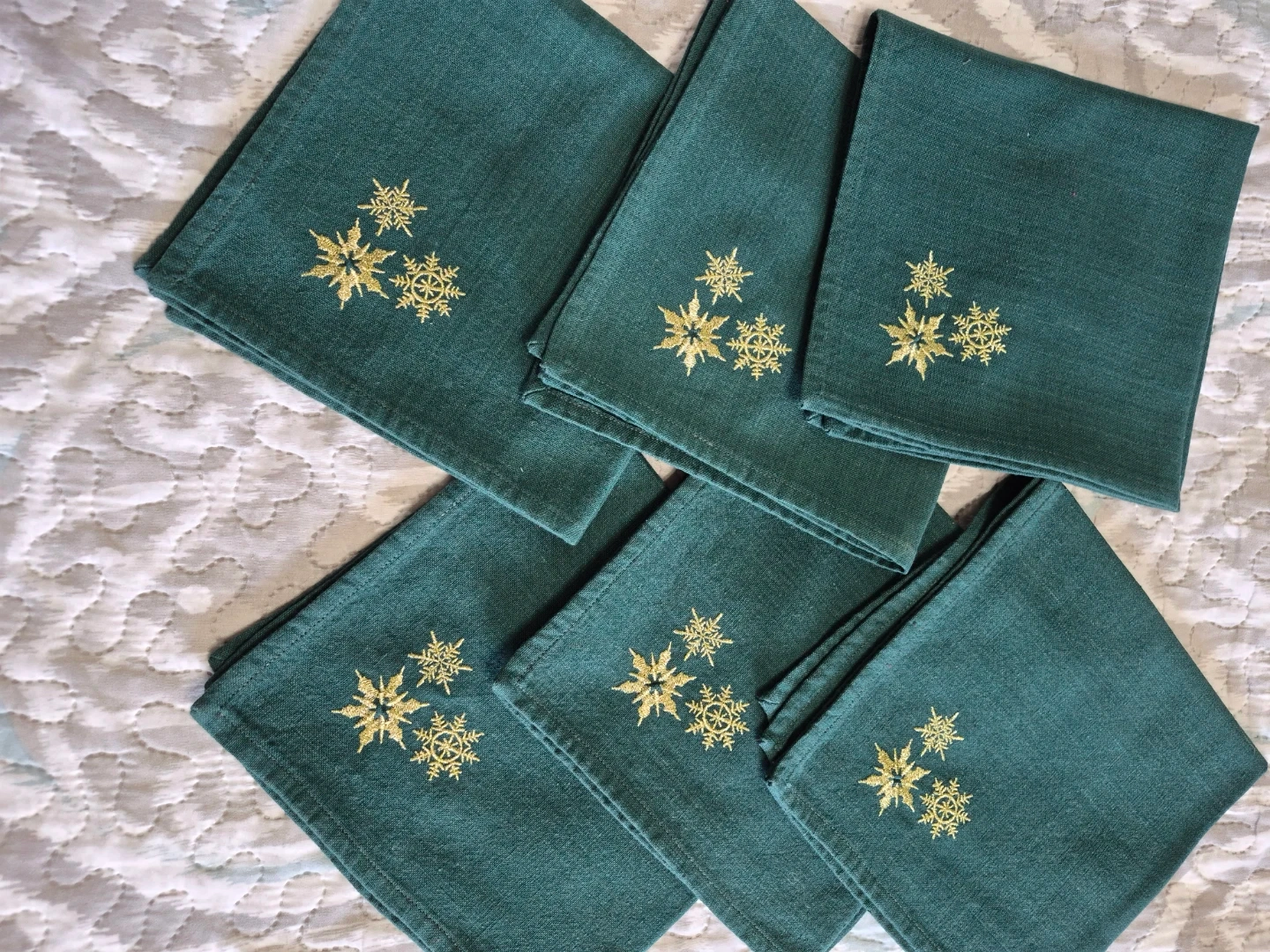 Green Embroidered Snowflake Cotton Napkins Set Of 6 - 16 1/2"x 16 1/2" please see all pictures