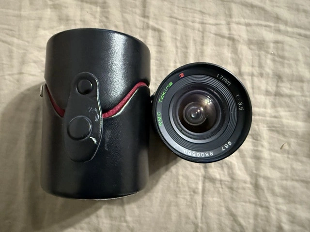 Tokina RMC 17mm f/3.5 ultra-wide lens (Ø67mm filter thread). Great for wide street/architecture/creative perspectives. On a Nikon DX body like the D200, it frames roughly like a ~25.5mm equivalent. Includes: Lens + hard case (as pictured). Mount: Looks like Nikon F mount (please confirm with your camera; happy to let you test on pickup). Condition: Used; body shows normal wear. Glass appears clean in photos; you’re welcome to inspect closely. For Sale By: Owner