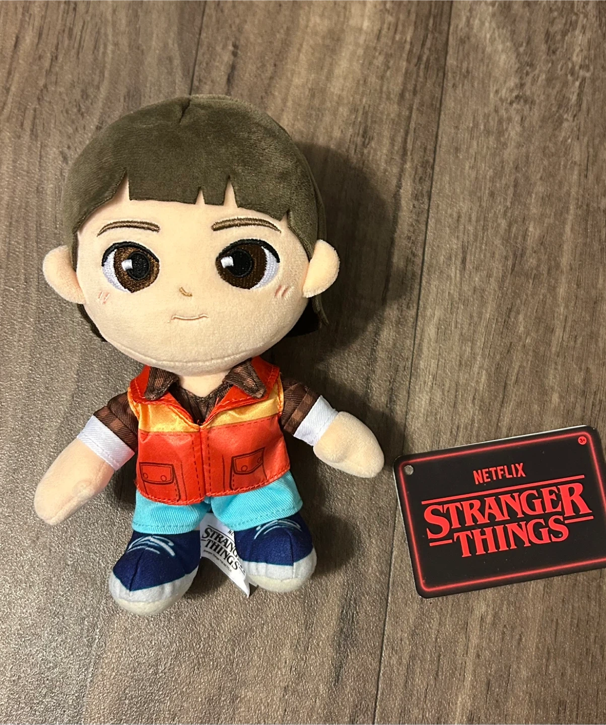This is a soft plush toy featuring the character Will Byers from Stranger Things. It includes the official Netflix Stranger Things tag. Perfect for any fan of the show!