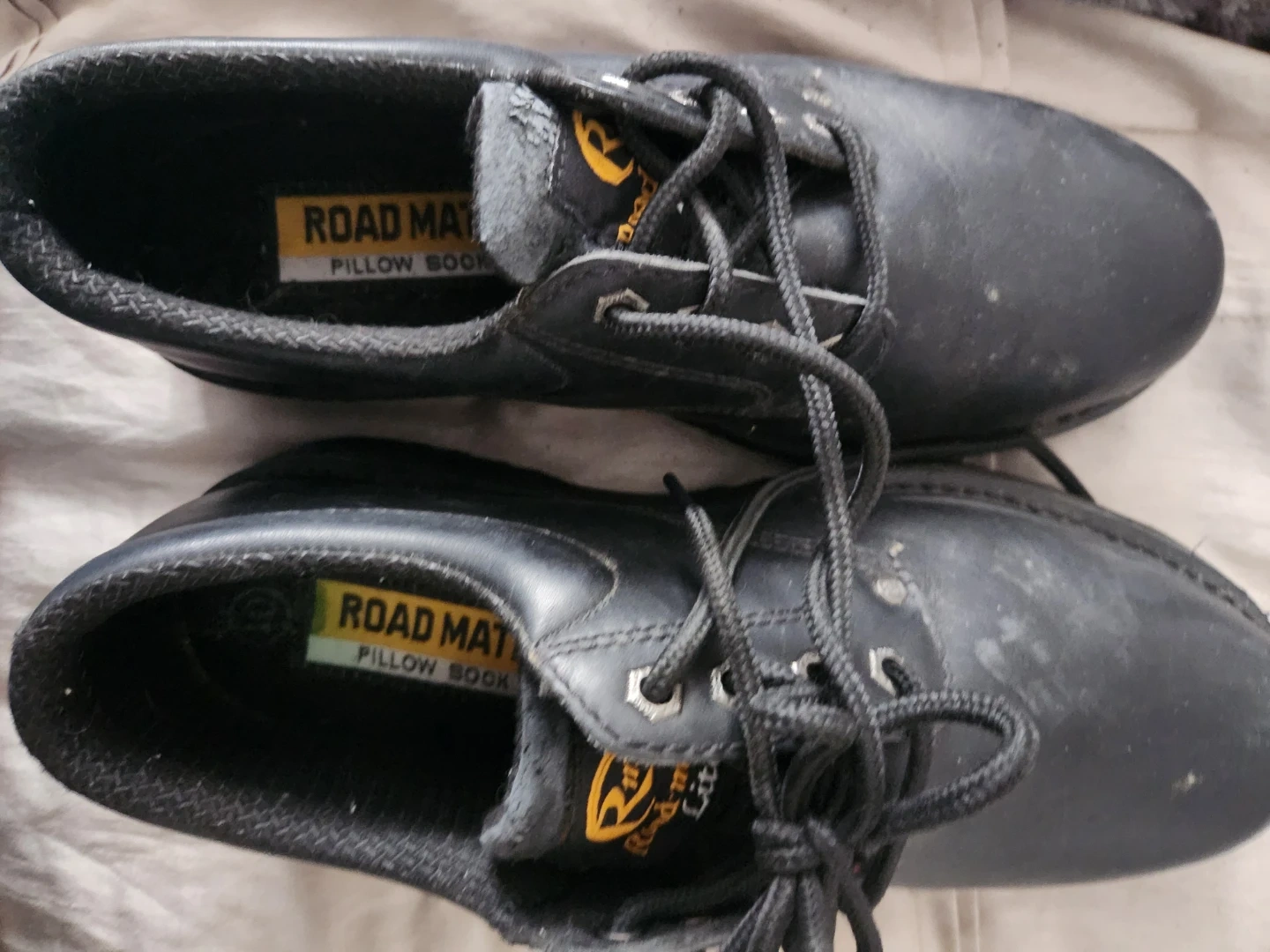 Road Mate men's work shoes. Genuine leather upper in black. Size 10EE with pillow sock for comfort. Oil resistant soles.