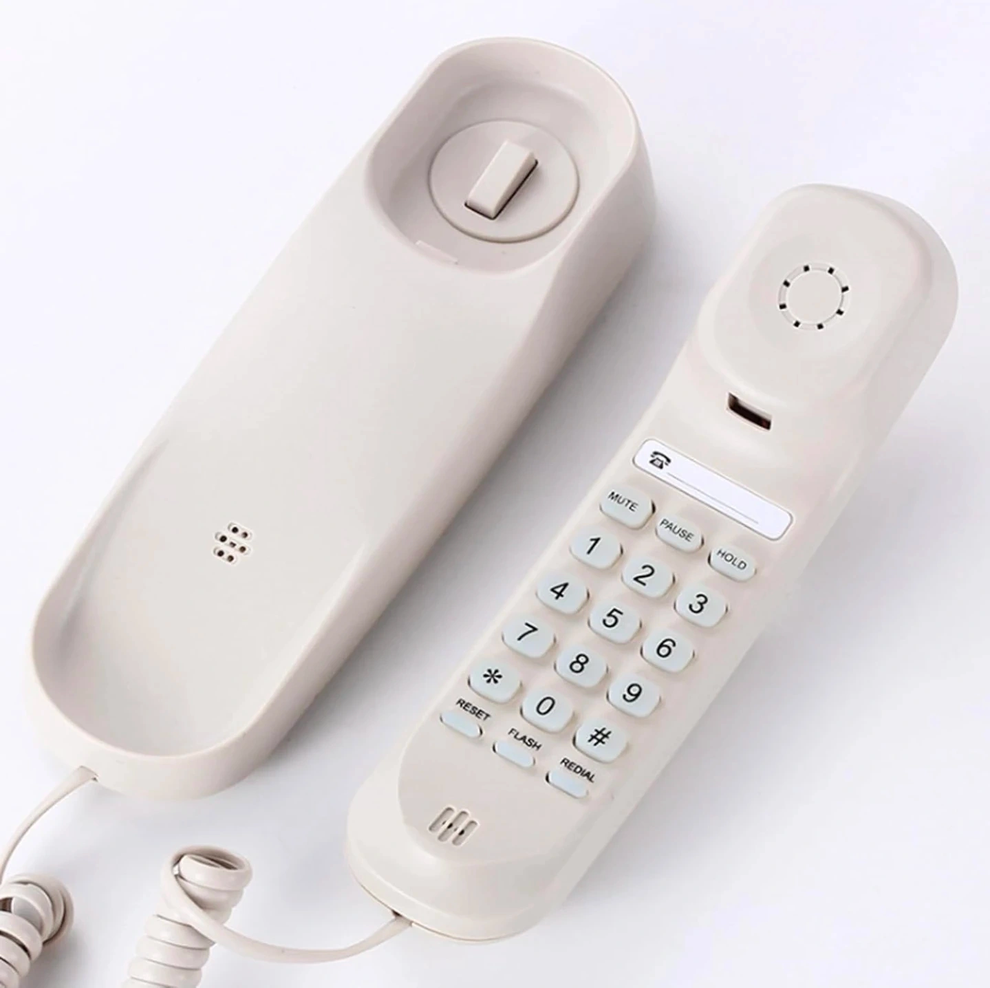 This is a corded landline telephone. It features mute, pause, and hold buttons. Includes original packaging.