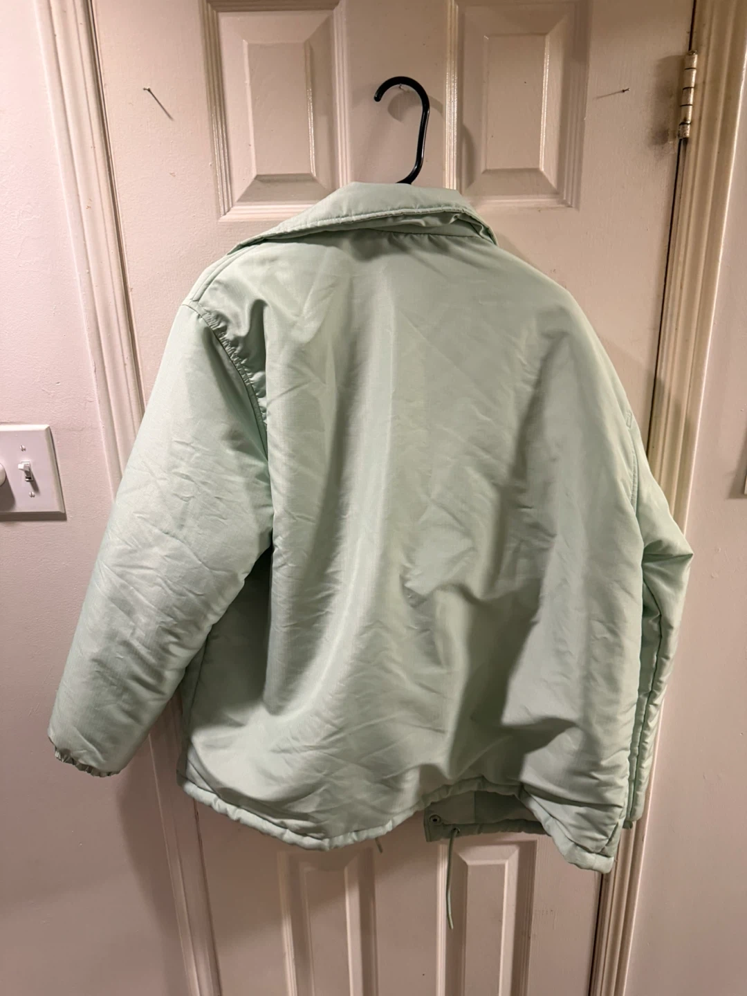 This light mint green coaches jacket from No Boundaries is a size M/M. It features adjustable drawcords. It's a great lightweight jacket for the spring or fall!