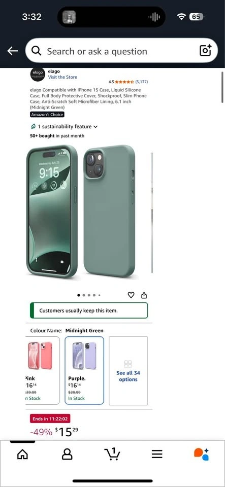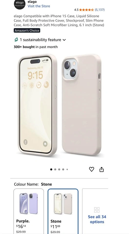 New elago iPhone 15 Case, Liquid Silicone (stone & green)