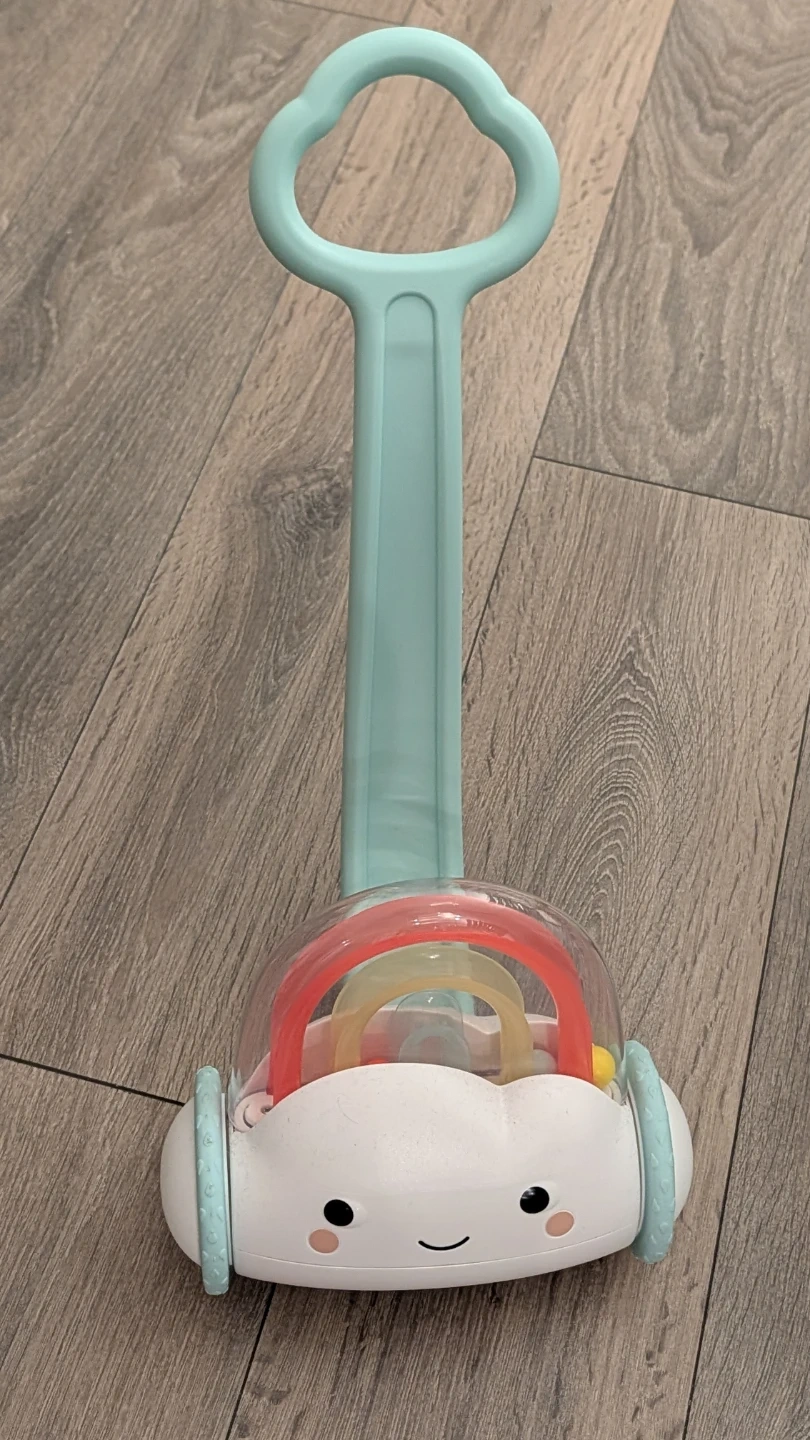 I'm selling a Fisher-Price rainbow cloud walker. It's in great condition and ready for a new little one to enjoy! This adorable walker helps your baby develop their gross motor skills as they push and play. The colourful rainbow rings inside the cloud add visual stimulation and encourage exploration