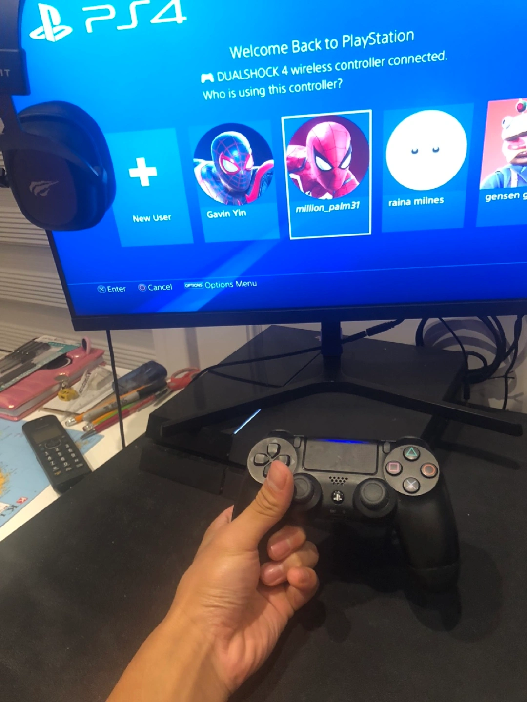 PS4 Console, Head Phones, 120 hertz monitor,