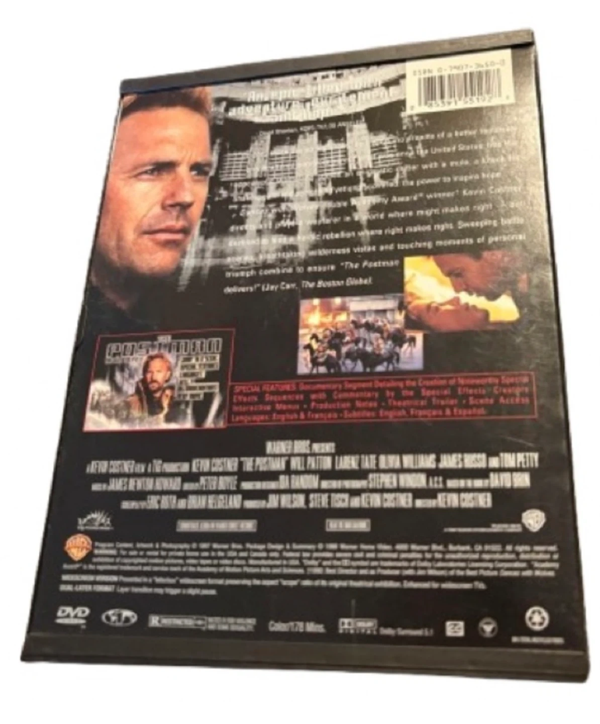 A clean, well‑kept DVD copy of The Postman, directed by and starring Kevin Costner. This dystopian action‑adventure is based on the acclaimed novel by David Brin and features a powerful story of hope and resilience.