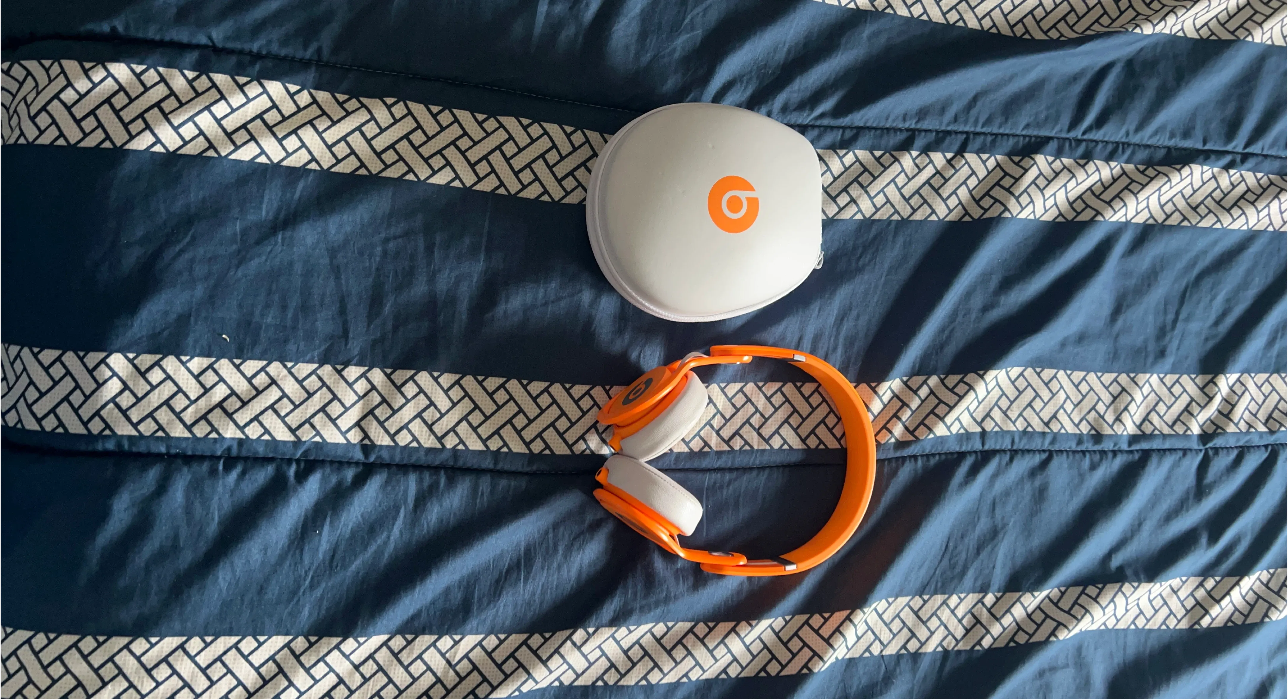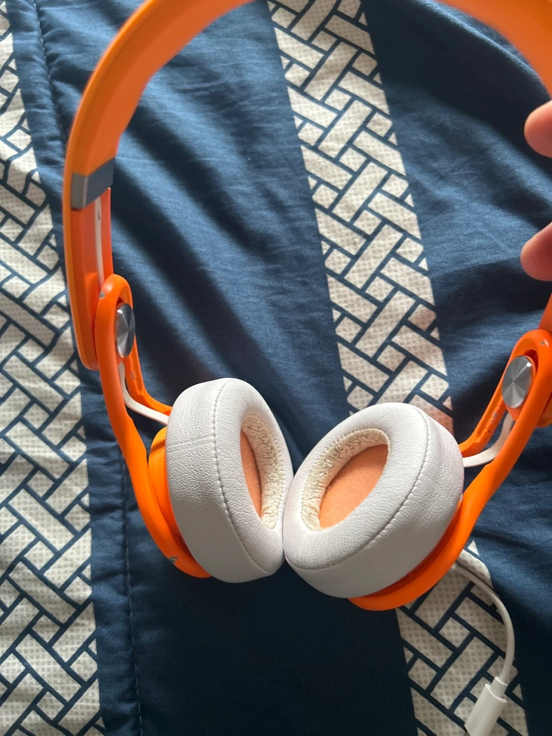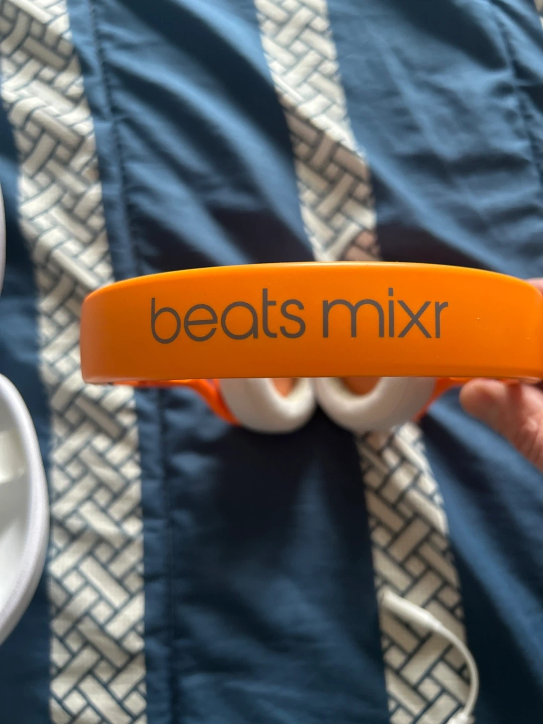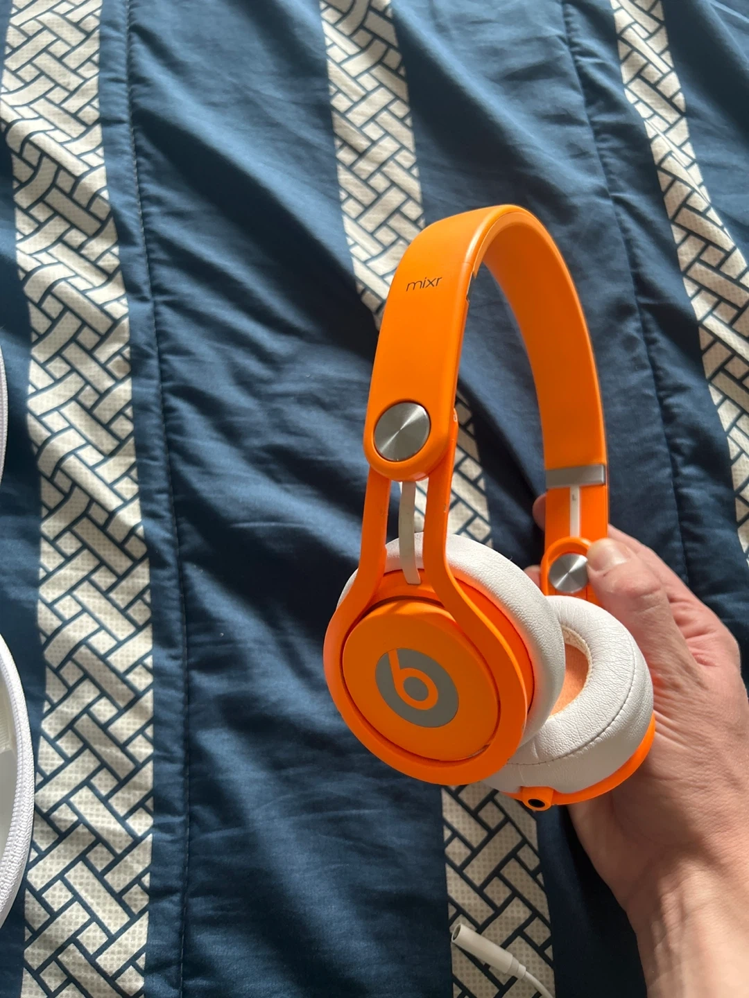 Beats Mixr on-ear headphones in a bright orange colour. They come with a protective carrying case and a cable. Great for listening to music on the go!