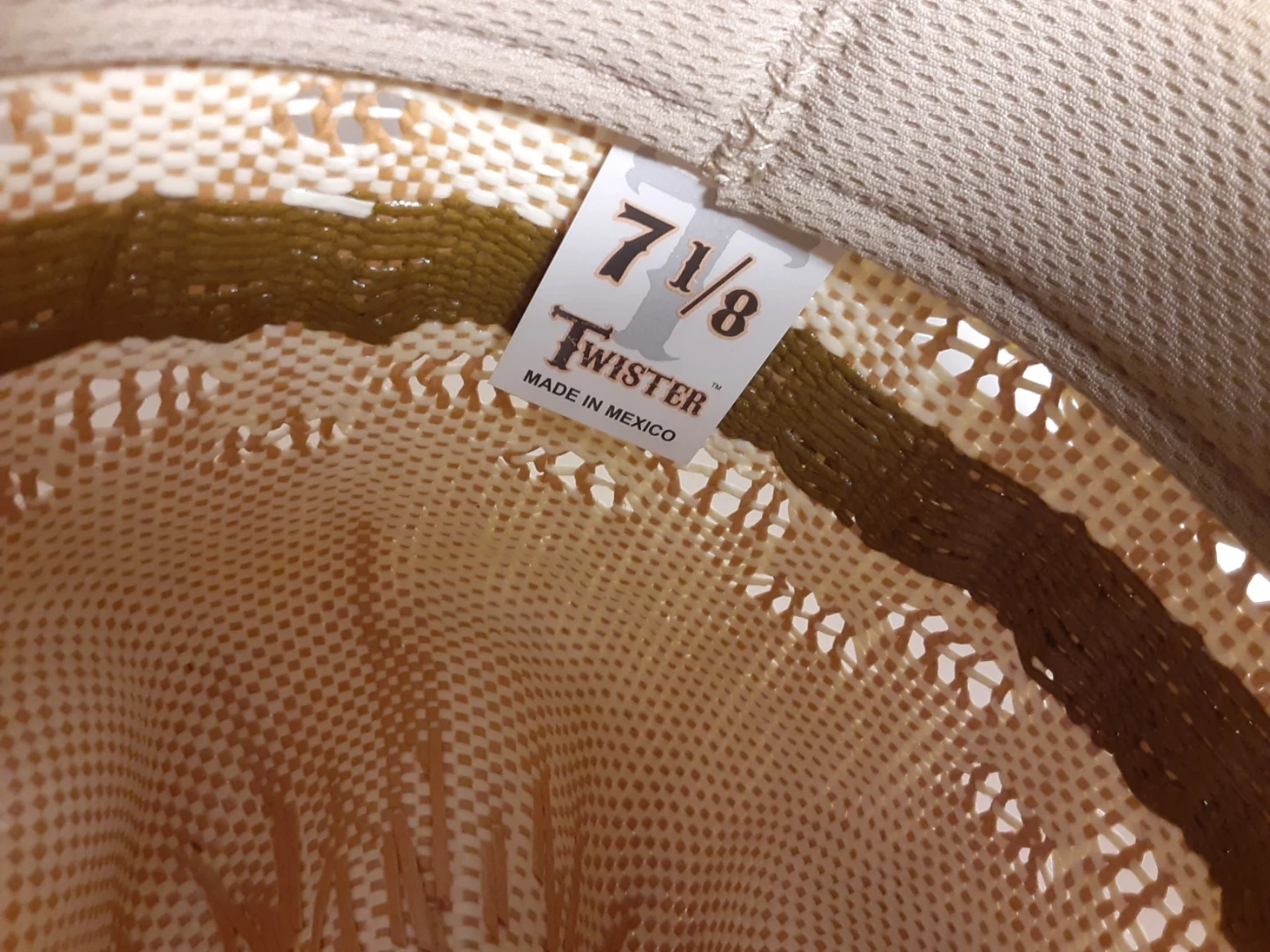 Selling a Twister cowboy hat. It's in great condition, worn a fews times, very lightly/casually and ready for a new home! The hat features a stylish design with a brown ribbon accent.
