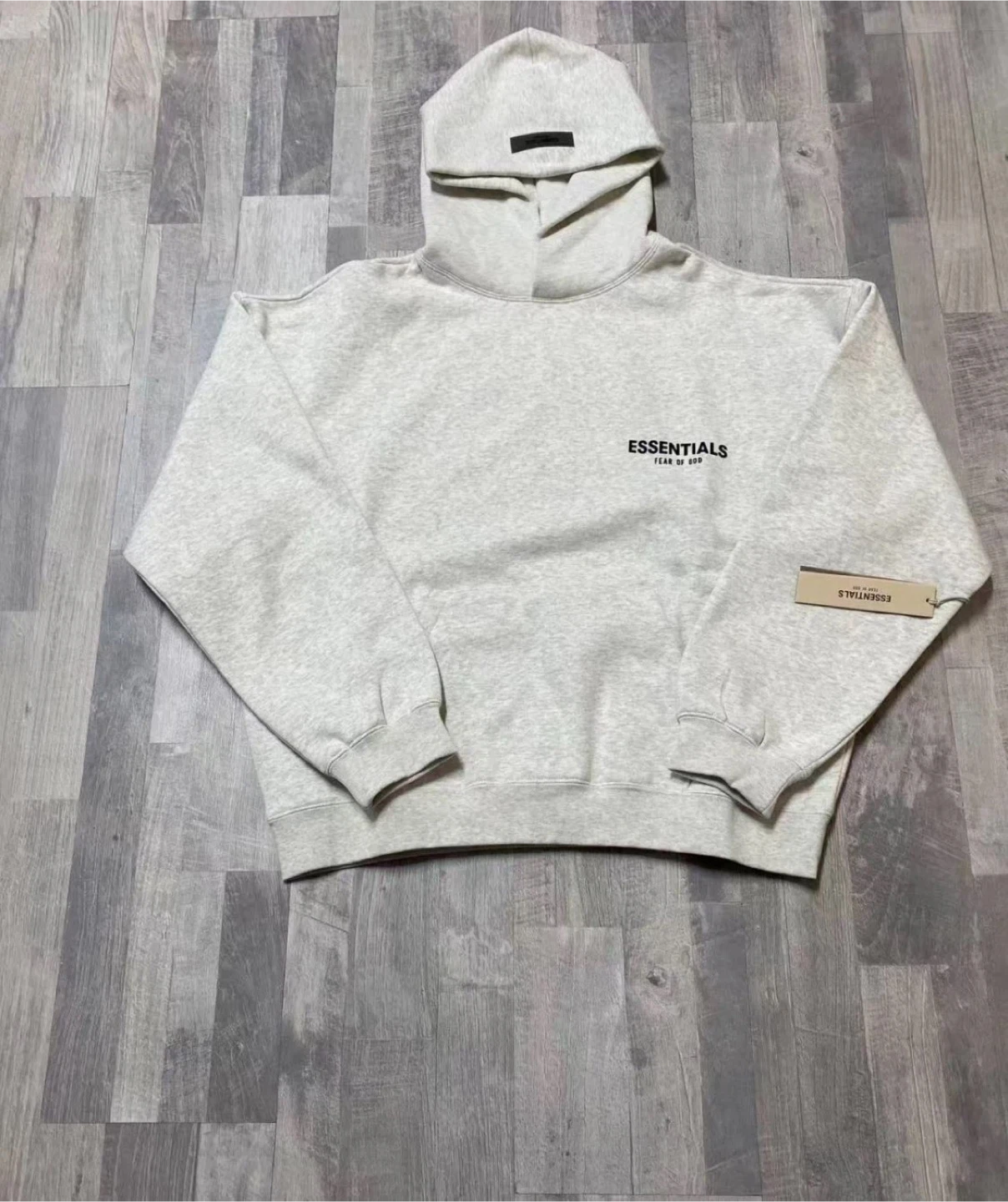 Selling an Essentials Fear of God hoodie in a light grey colour. It's in great condition and ready for a new owner! The material is soft and comfortable, perfect for everyday wear.