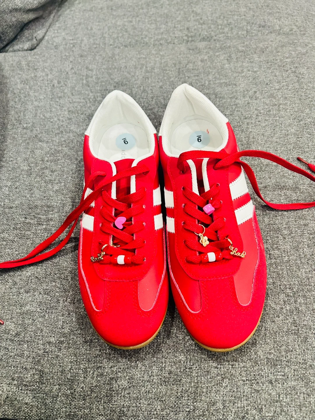 Selling a pair of Madden girl sneakers in red and white. They are in great condition and are a women's size 9- never been worn. Got as a gift but don’t have any use of it. No box -