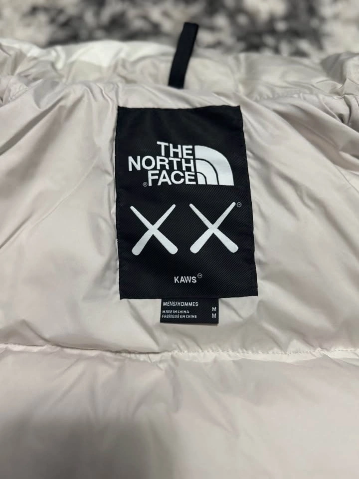 Brand new, premium quality The North Face x KAWS Puffer Jacket in Moonlight Ivory, Size Medium. This jacket features high-quality down filling for warmth and lightness, flawless stitching, crisp embossing and embroidery, and a smooth YKK zipper. It's in brand new condition with no damages or wear. Pickup available in Milton. Happy to provide more photos or a video if needed. Jacket: $240