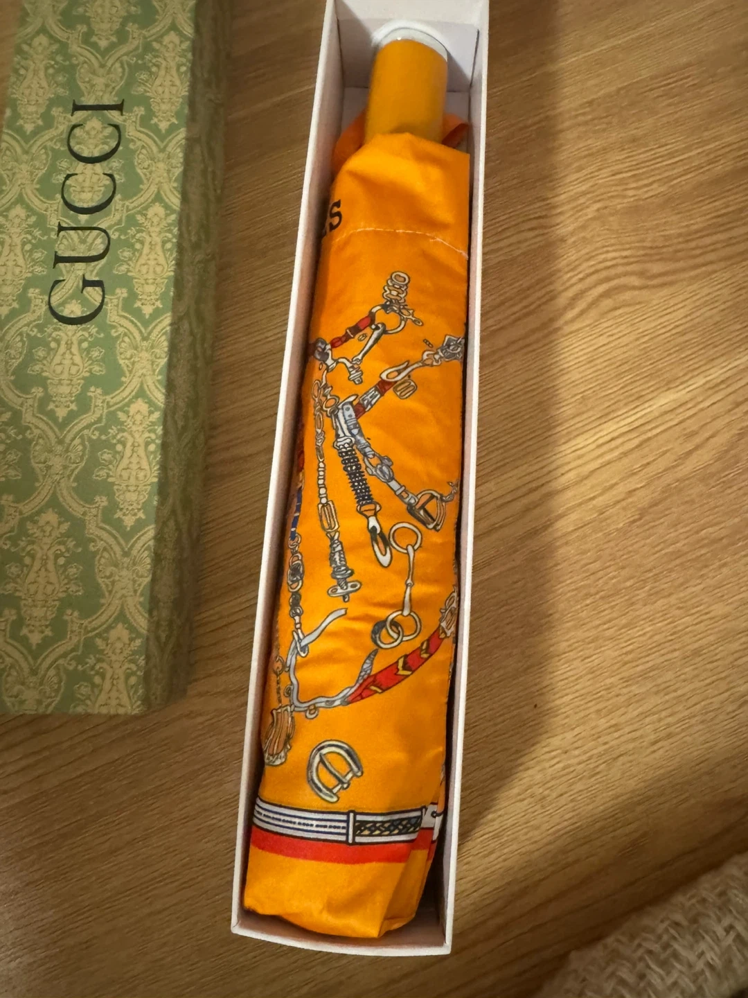 Selling a brand new Gucci design umbrella, still in its original box! It features a beautiful design. Hermes is available too. The umbrella is in perfect condition and ready to keep you dry in style. Comes with the original packaging