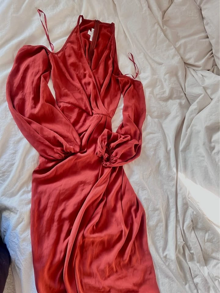 Moving closet sale! Party dress with puffed sleeves and off-the-shoulder design. Barely worn, no damages, in good condition. Size 12 AUS/US8. Pick up only at Coquitlam Library.
