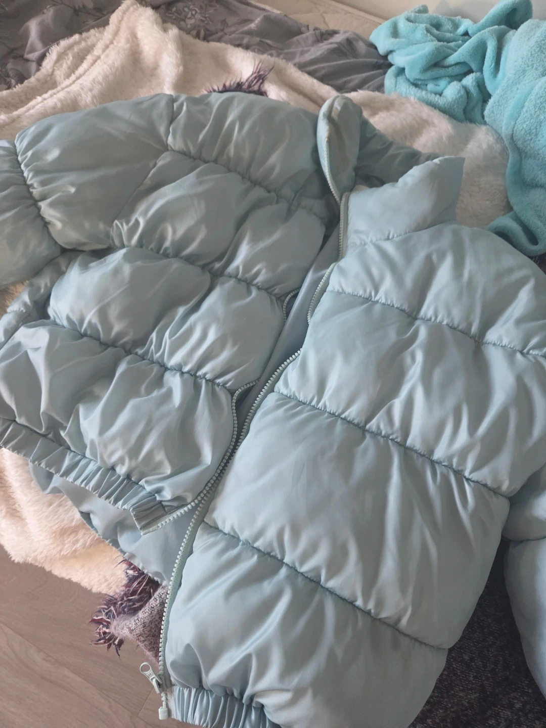 Light blue puffer jacket from BP. got it for 130$ from NORDSTROM. Size medium. It's a puffer style with a zipper closure. This jacket is great for keeping warm on cooler days!