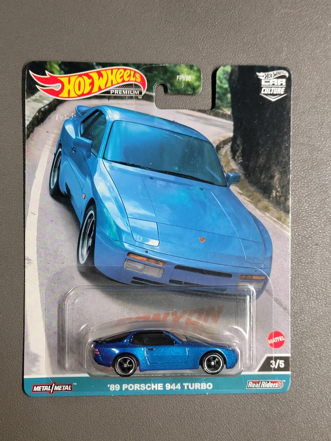 This is a Hot Wheels Premium die-cast model of an '89 Porsche 944 Turbo. It's part of the Car Culture series. The car features Real Riders wheels and Metal/Metal construction.