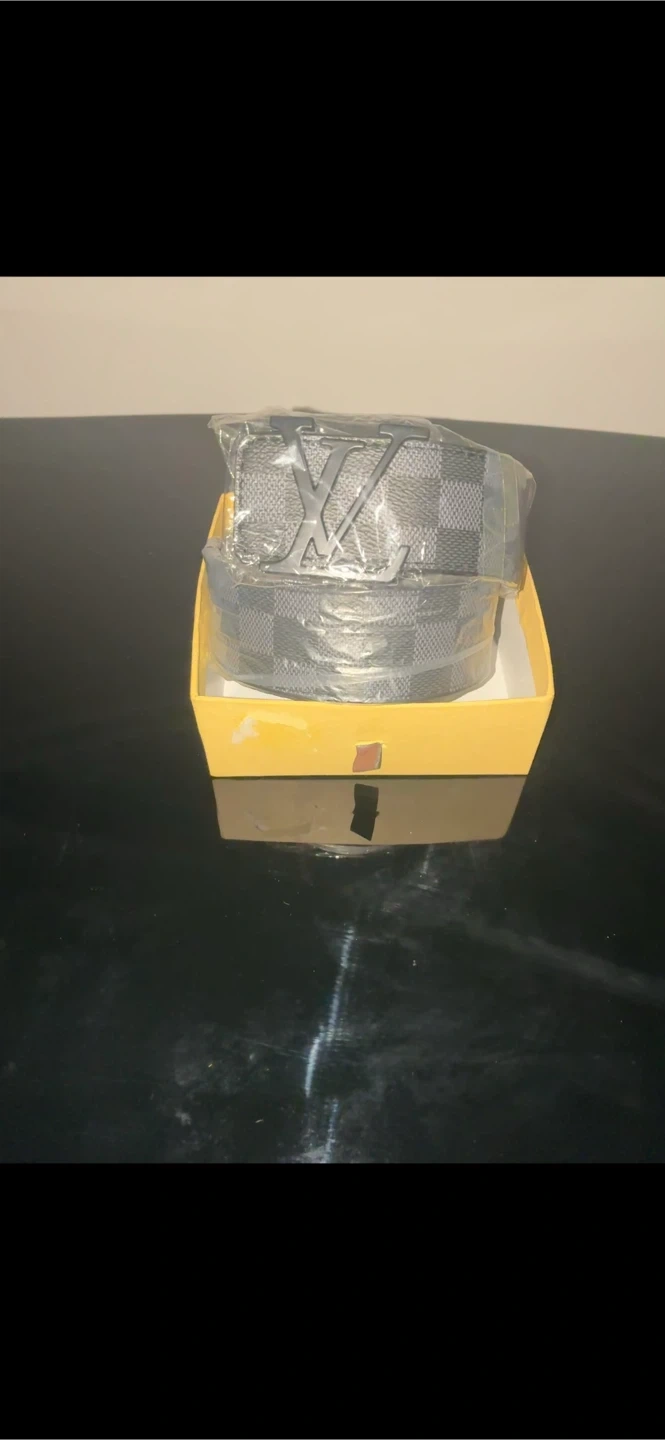 Louis Vuitton belt with iconic monogram pattern. Comes in original box. Offers a classic checkered design with a prominent LV buckle. Adds a touch of luxury to any outfit!
