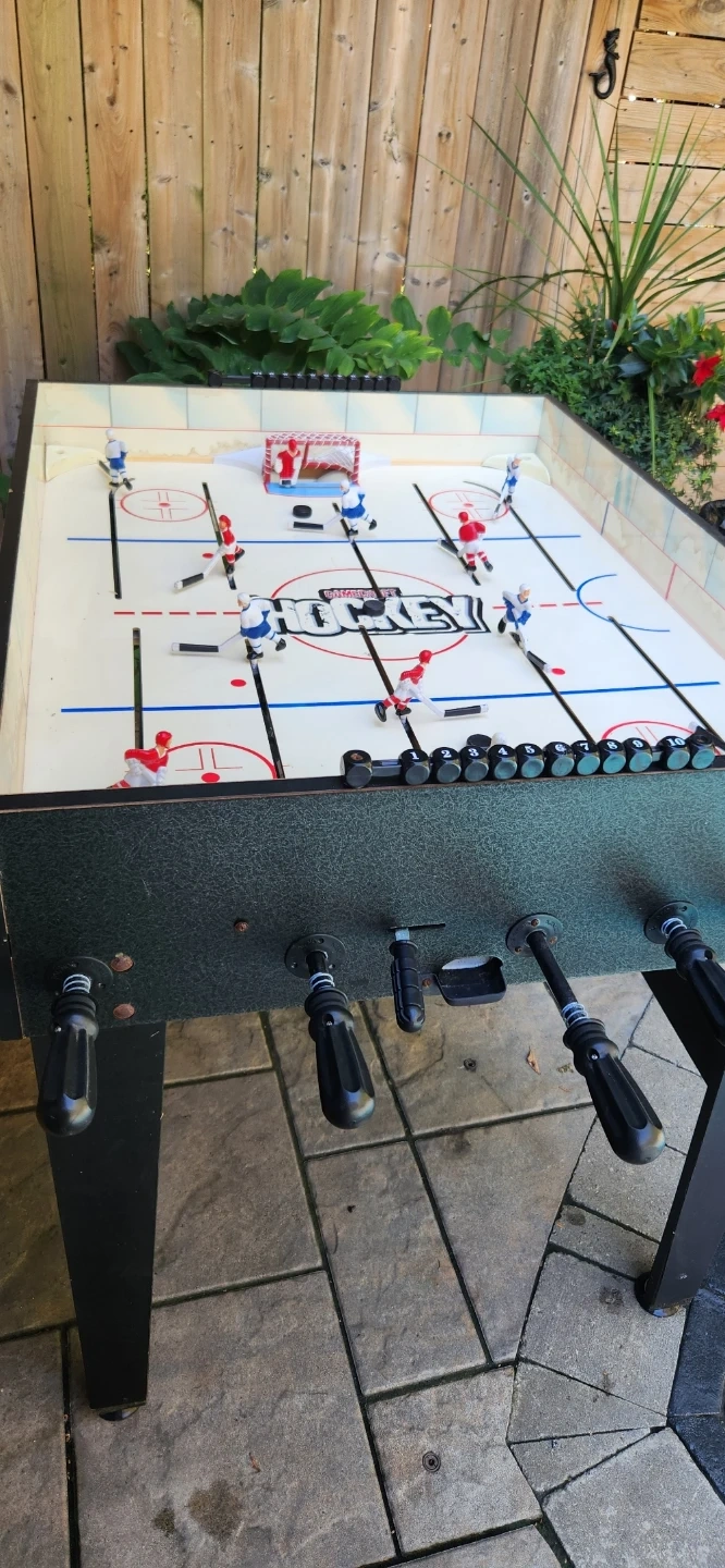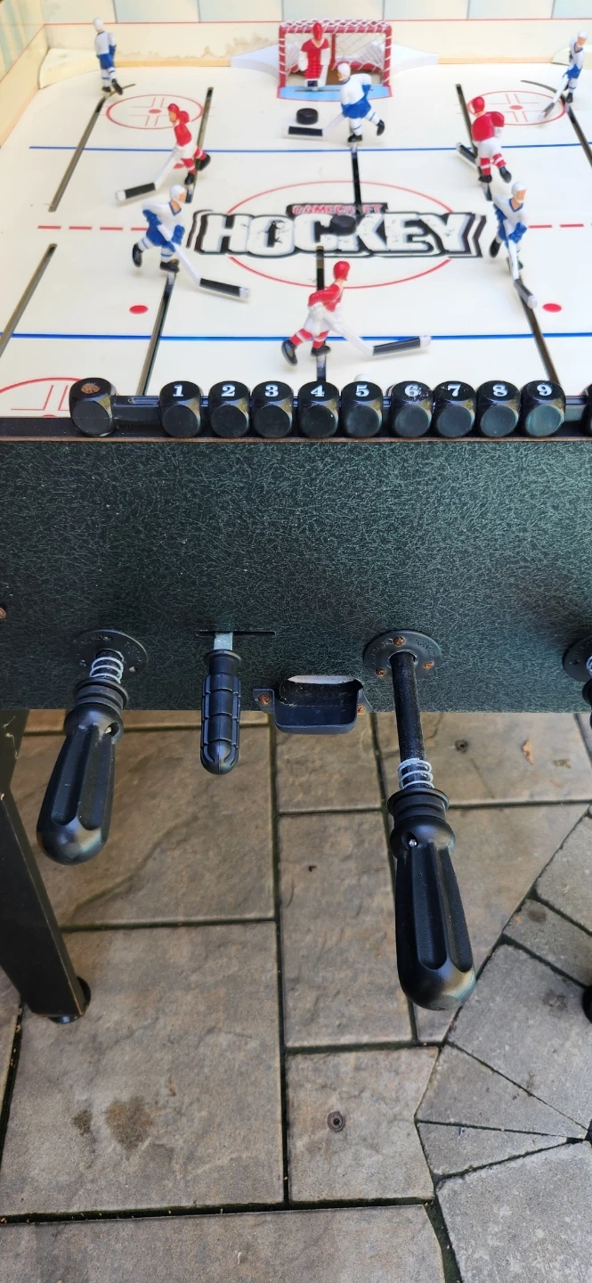 10Selling a table hockey game. It's in good condition and ready for some fun! All the players and parts are included as pictured. Also have extra parts.