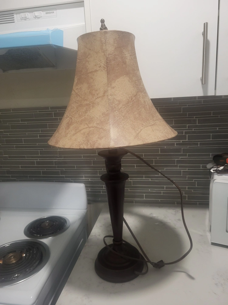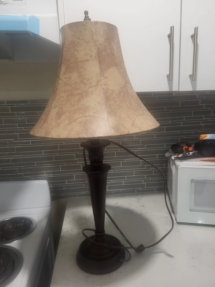 22Selling a table lamp with a beige shade. It's in great condition and would look lovely in any room. The lamp has a classic design and provides a warm, inviting light. Perfect for a bedside table or living room side table!
