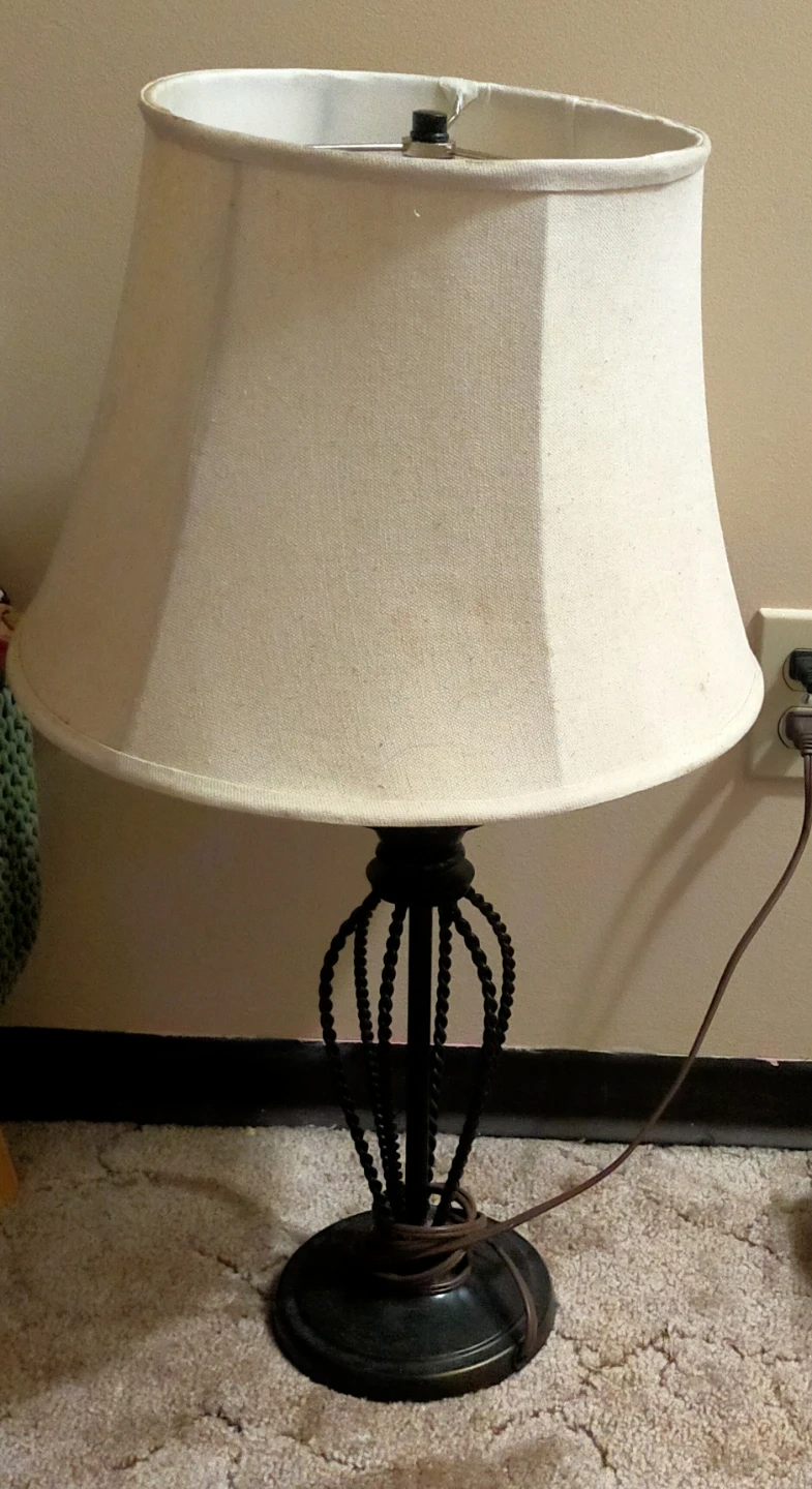 31Selling a table lamp with a fabric shade. It has a decorative metal base and is in good condition. Perfect for adding a warm glow to any room!