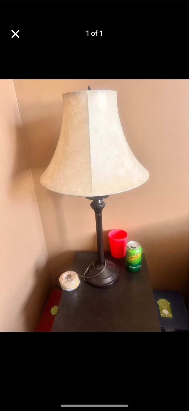 Selling a table lamp with a beige shade. It's in good condition and ready to brighten up your space there is two of them go as a set