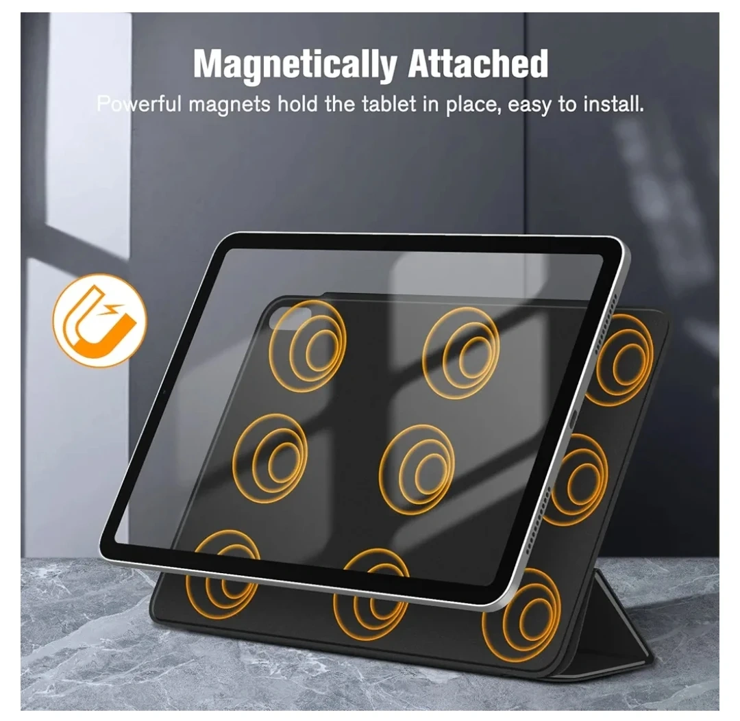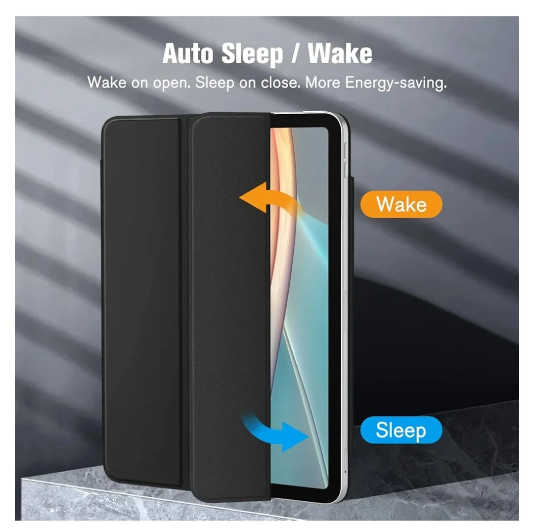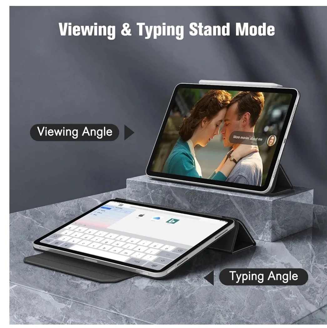 Protective case for tablet. Features auto sleep/wake, magnetic closure, and multiple stand positions for viewing and typing. Sleek design. Offers great protection.