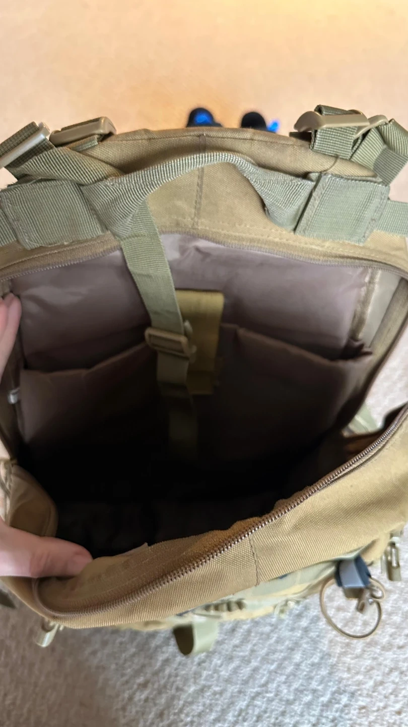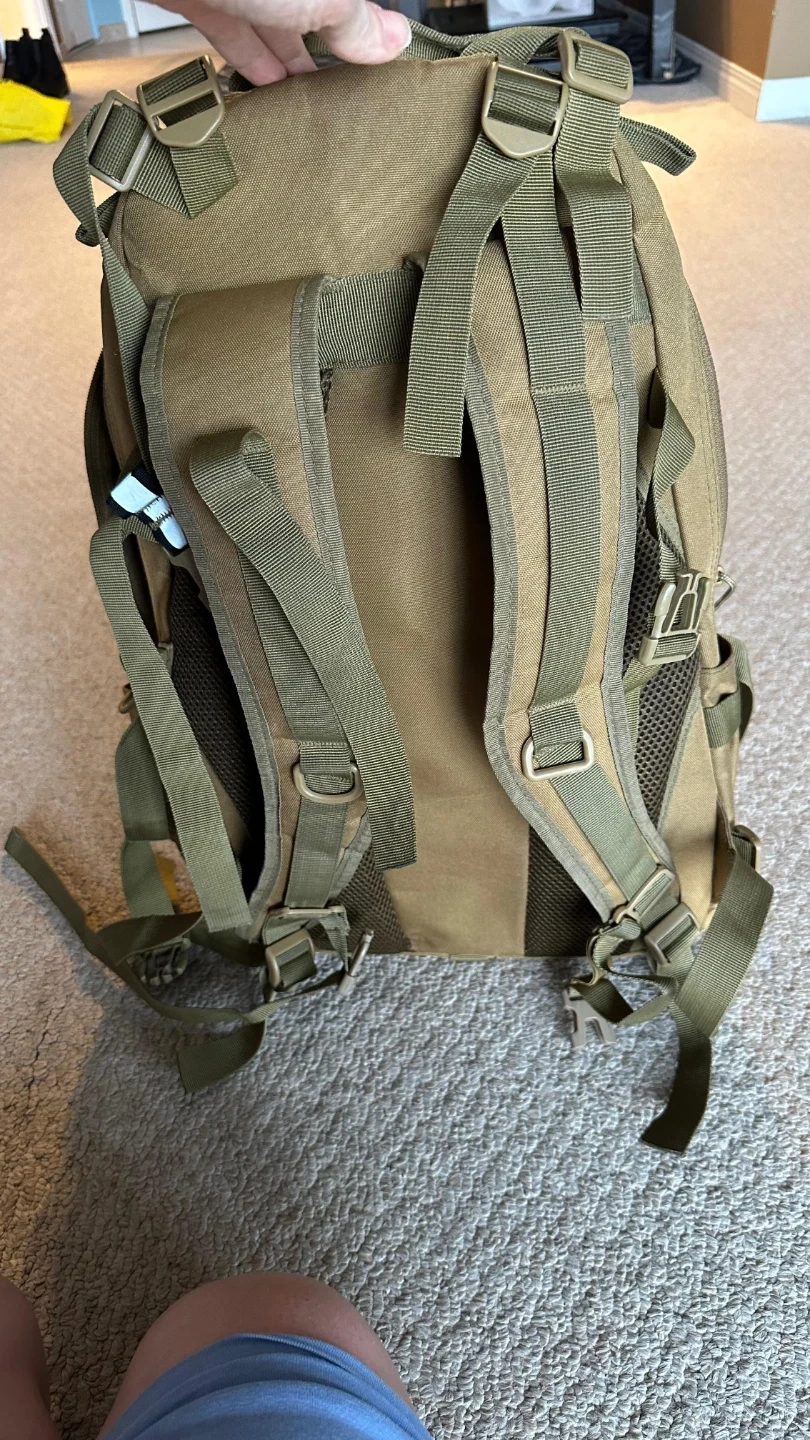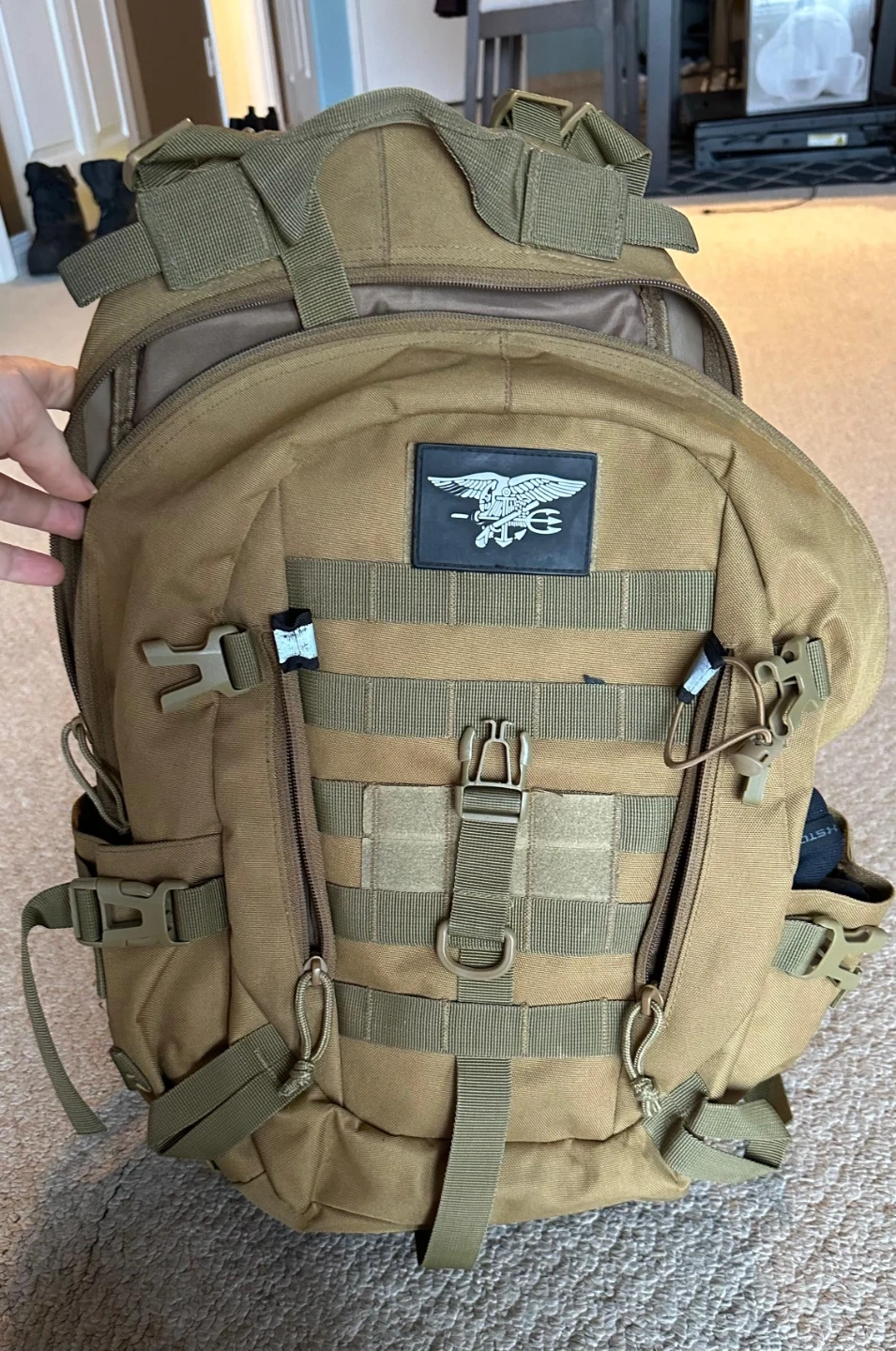 70Selling a tactical backpack in tan colour. It looks to be in great condition and ready for your next adventure!